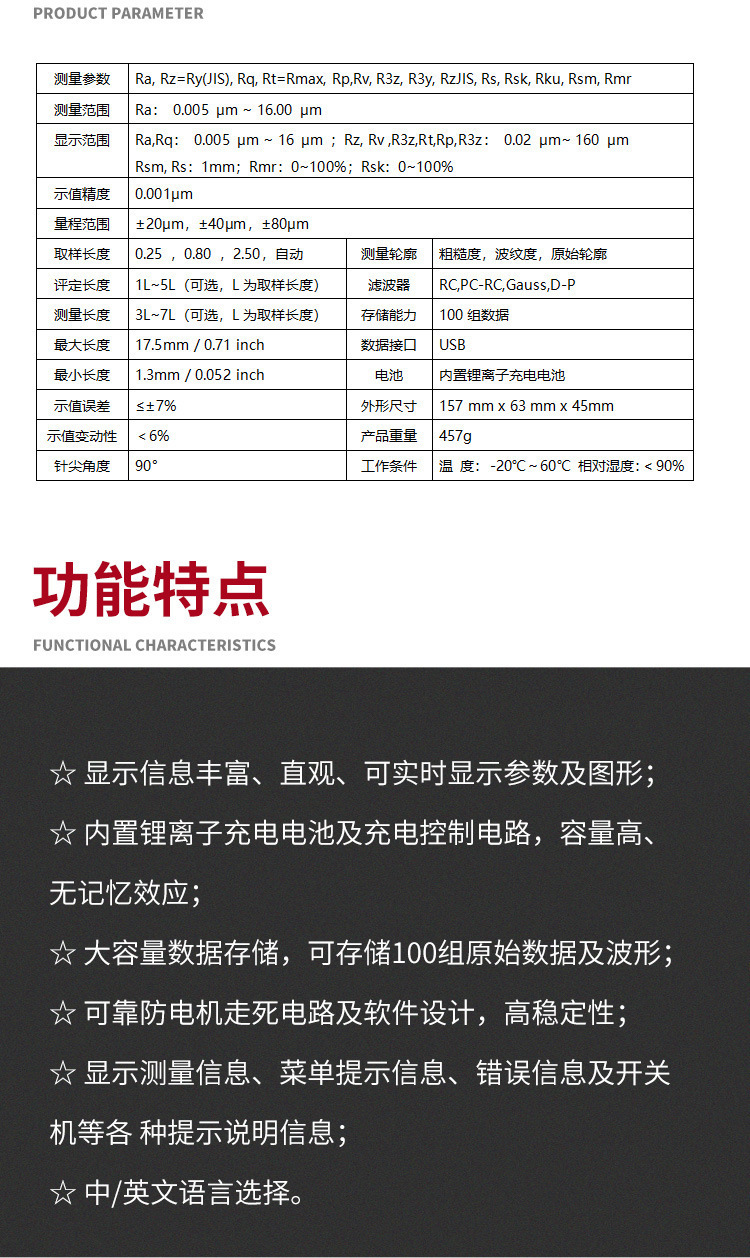 Ra, Rz=Ry(JIS), Rq, Rt=Rmax, Rp,Rv, R3z, R3y, RzJI