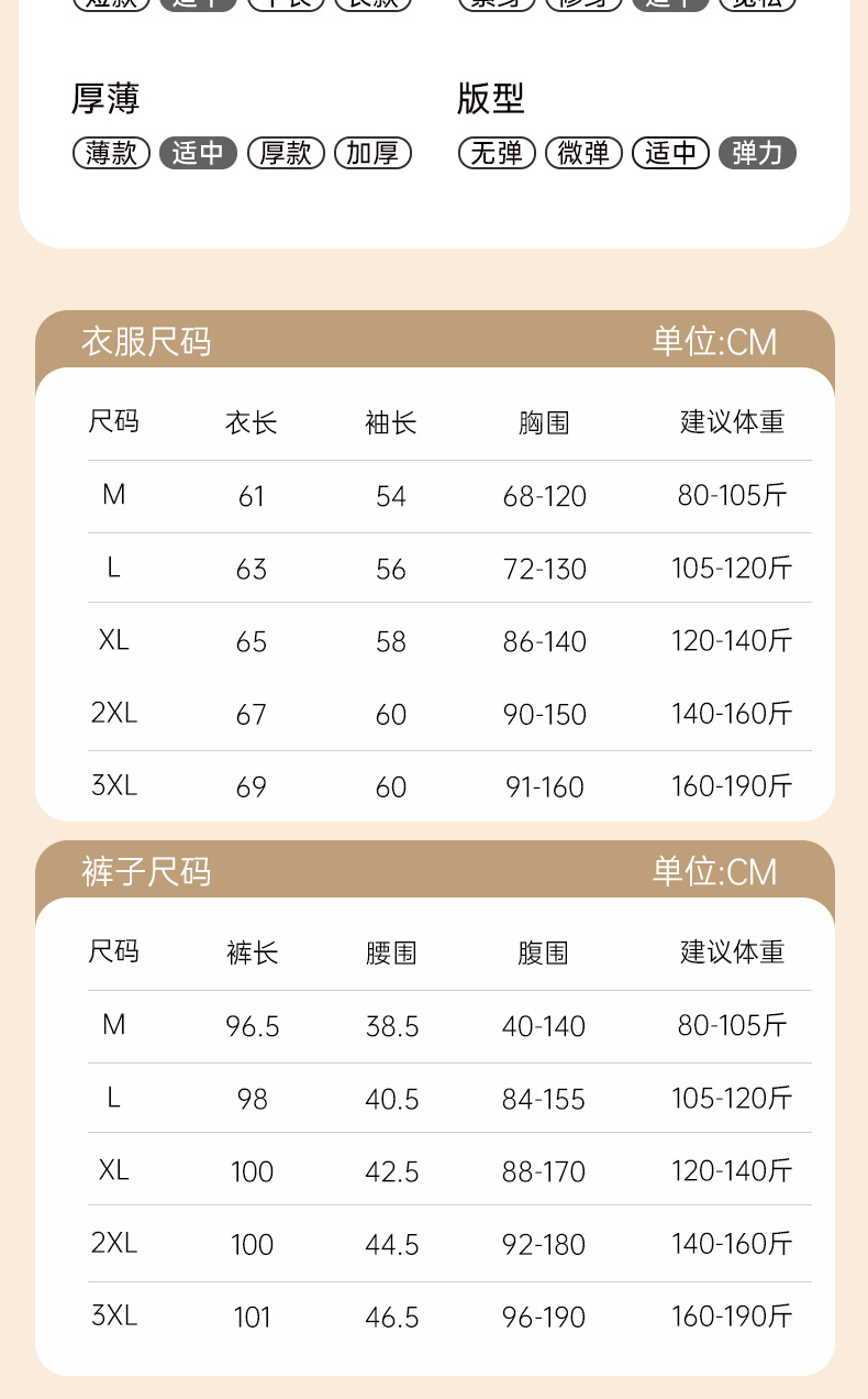 М【 45-52.5kg 】; L【 52.5-60kg 】; XL【 60-70kg 】; XXL【 70-80kg 】; XXXL【 80-95kg 】