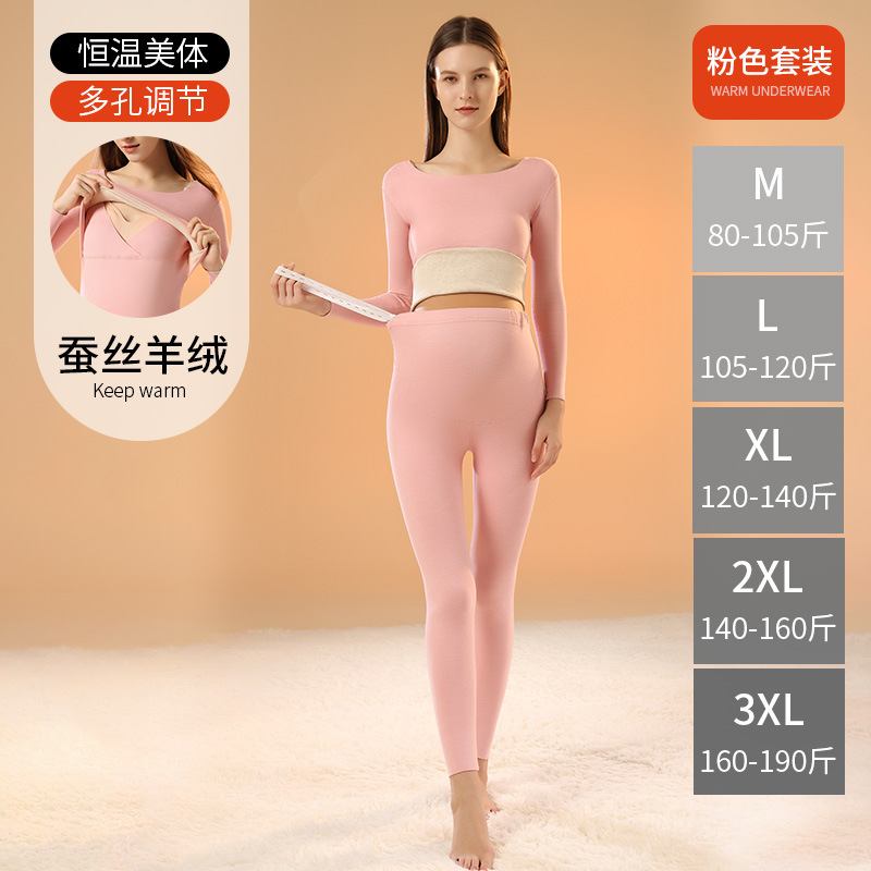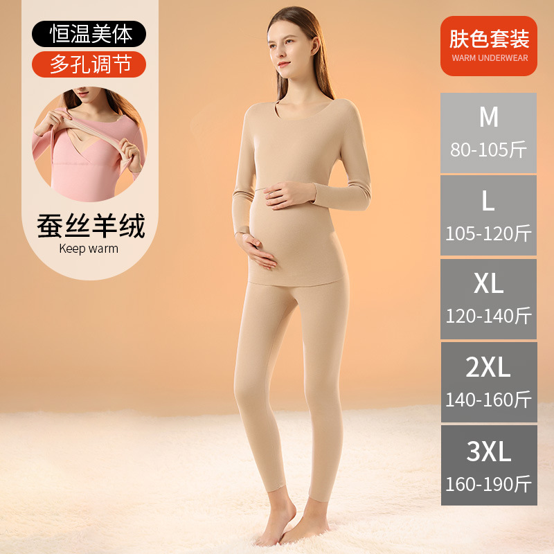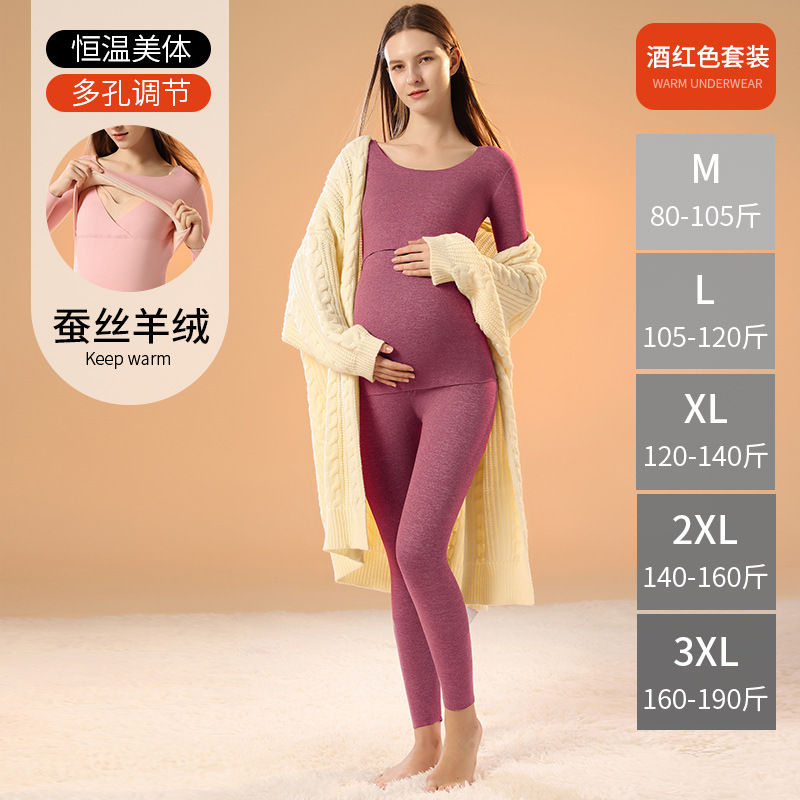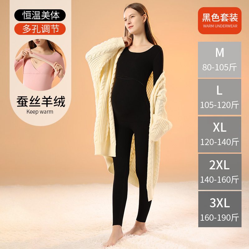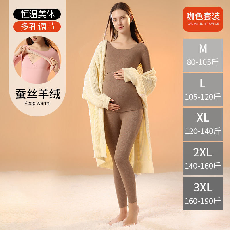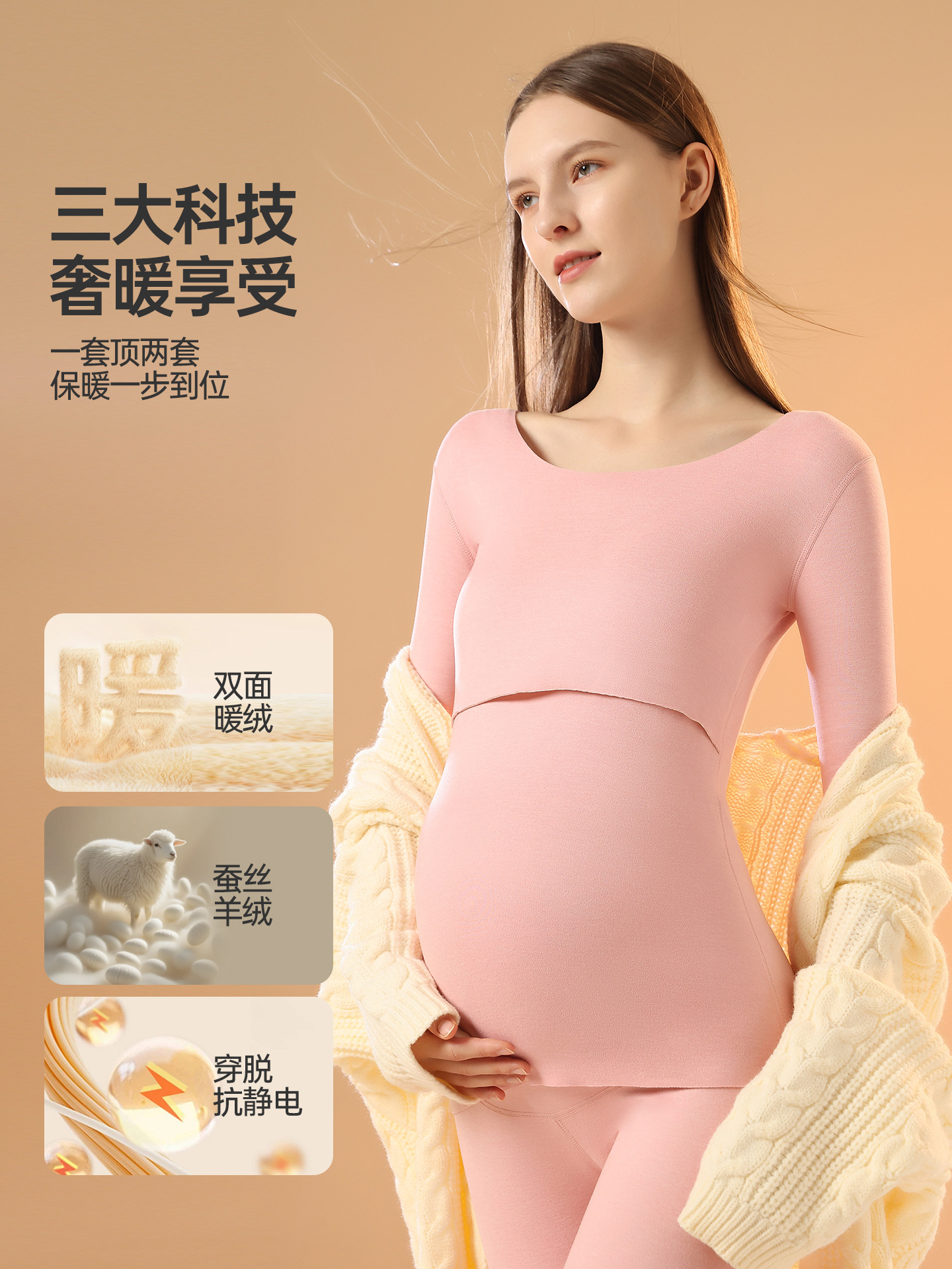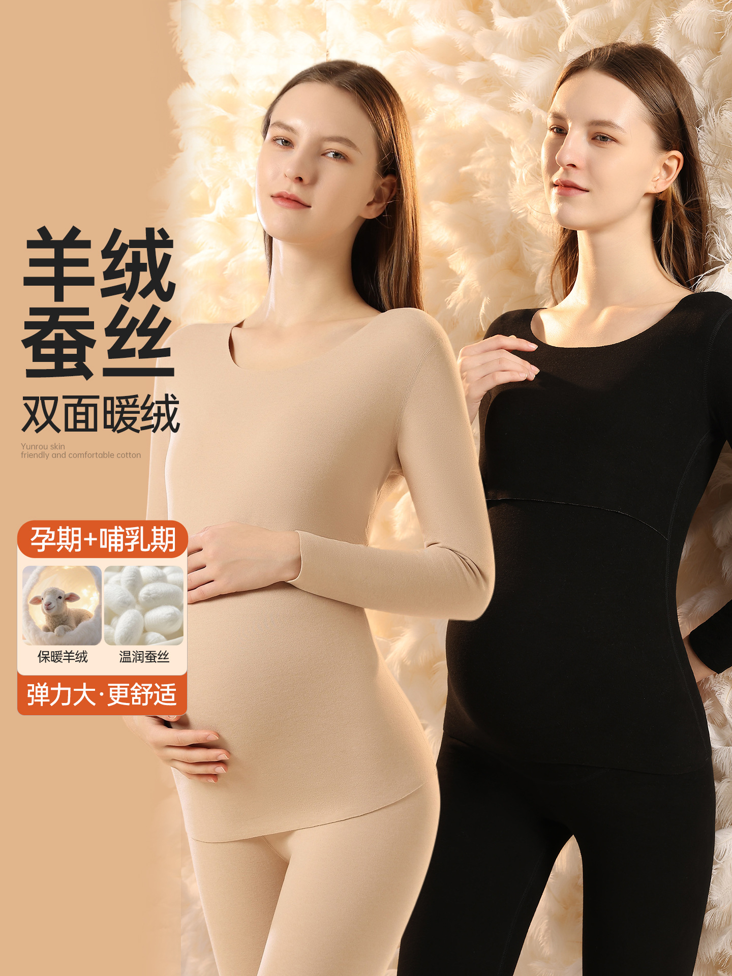 Комплект термобелья для беременных из кашемира и шелка, зимний флисовый комплект послеродовой одежды для кормящих мам: термотопы и брюки для женщин