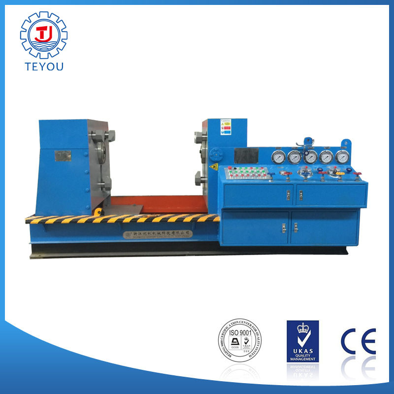 本机集机电、液压、试压、液体介质贮存循环使用于一体,具有功能完善、性能稳定、自动化程度高等特点。广泛用于公称通径DNl 5-1000mm的直通式法兰及螺纹连接各类高、中、低压阀门的强度、密封和泄漏量等各项性能测试。测试介质:水、气、油。最高密封试验压力 32.0MPa,强度48 0MPa。