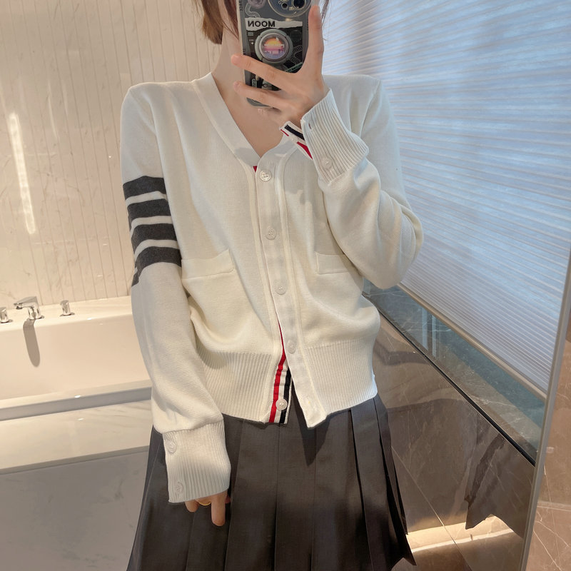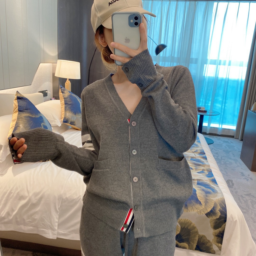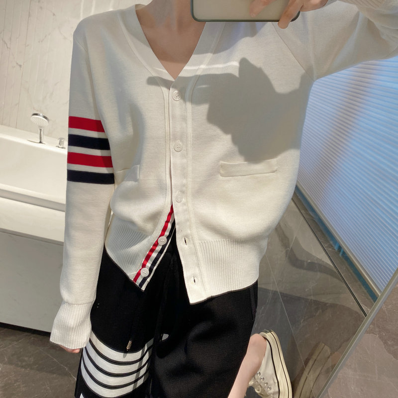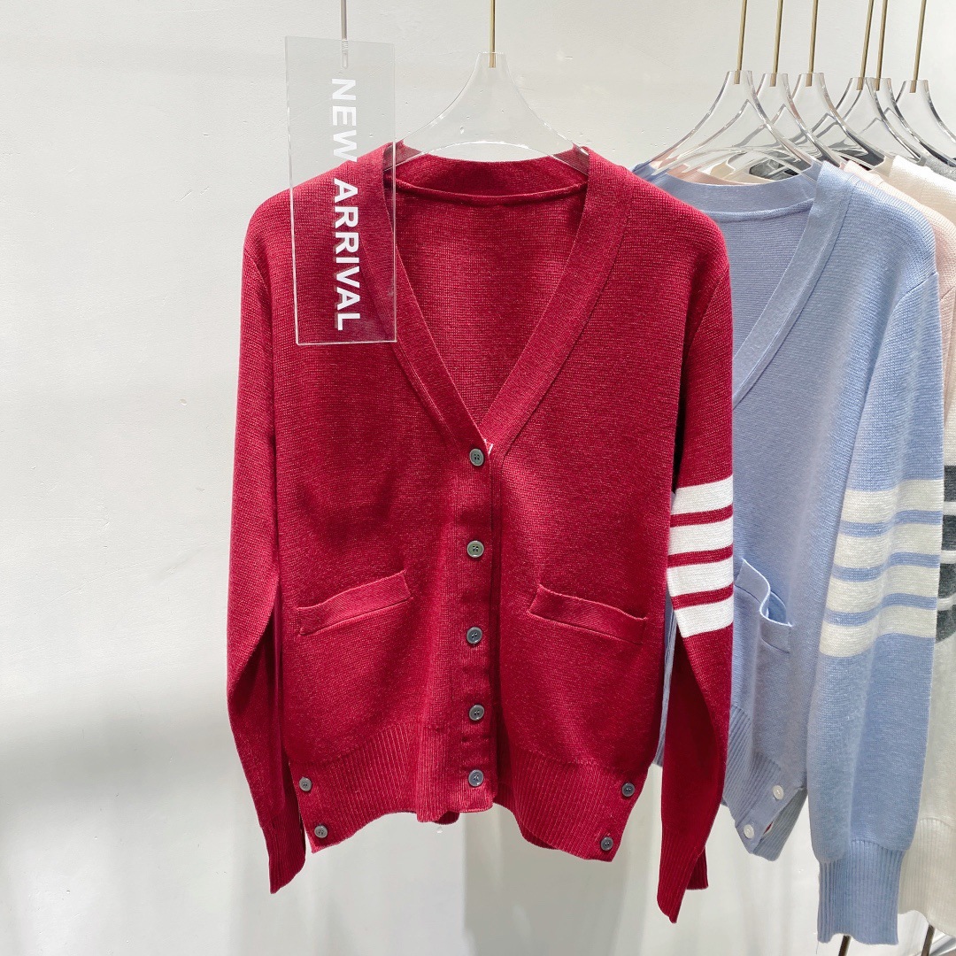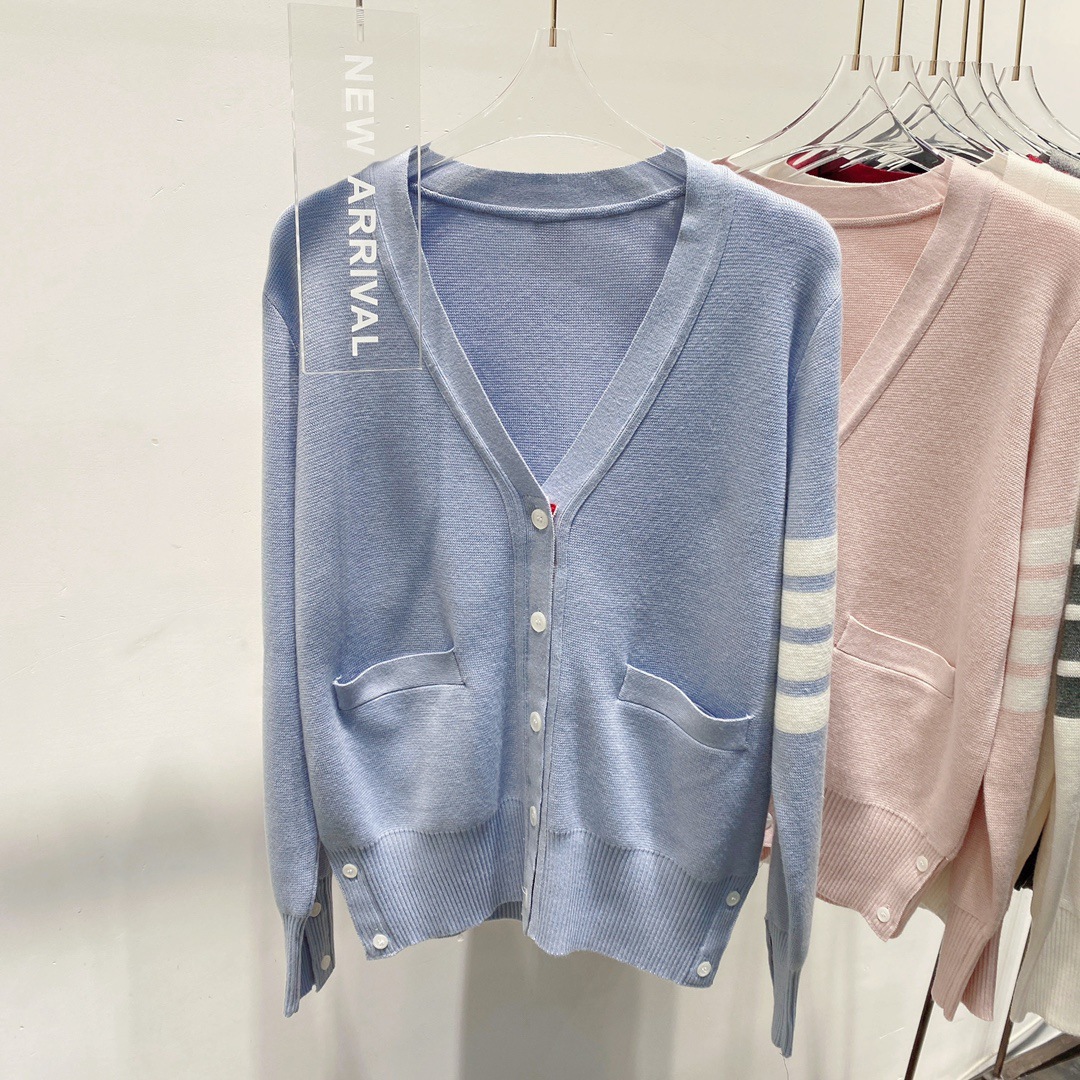 THOM BRASSY 1295TB Пять пуговиц трикотажный V-образный свитер с длинными рукавами блузка