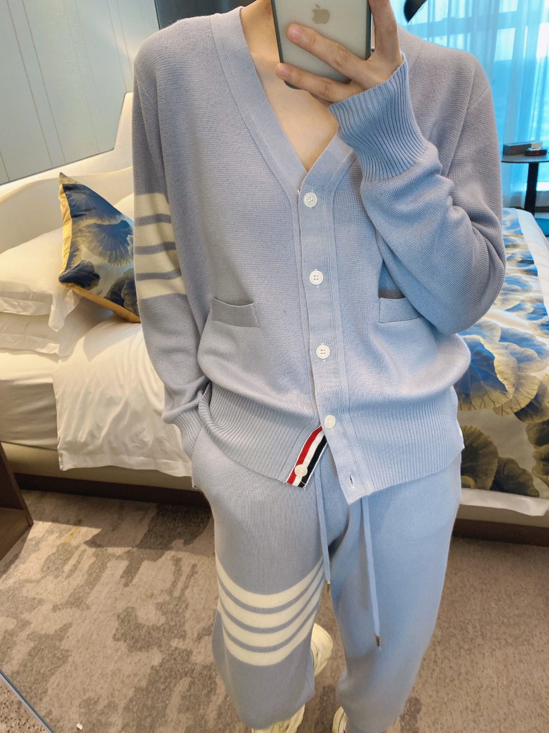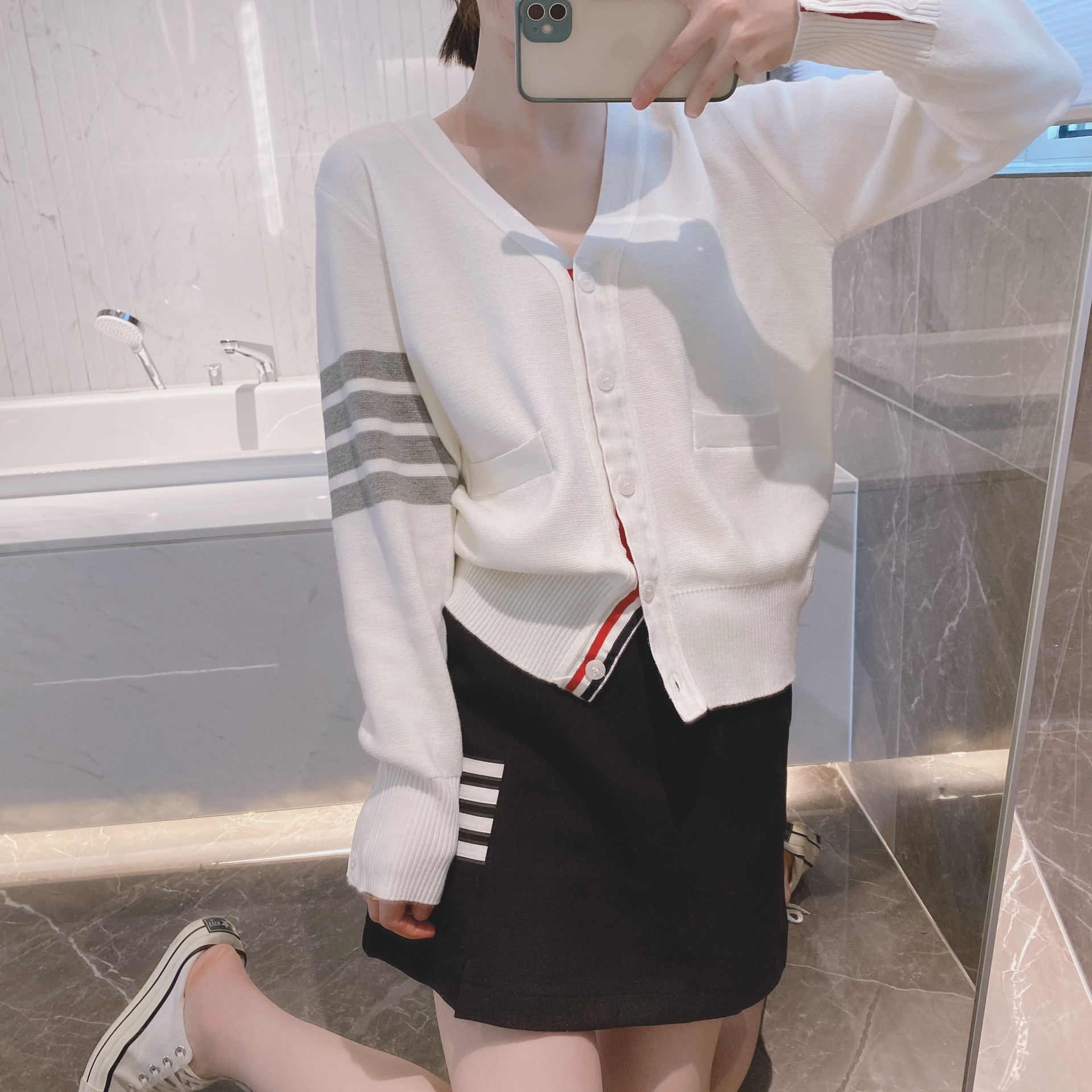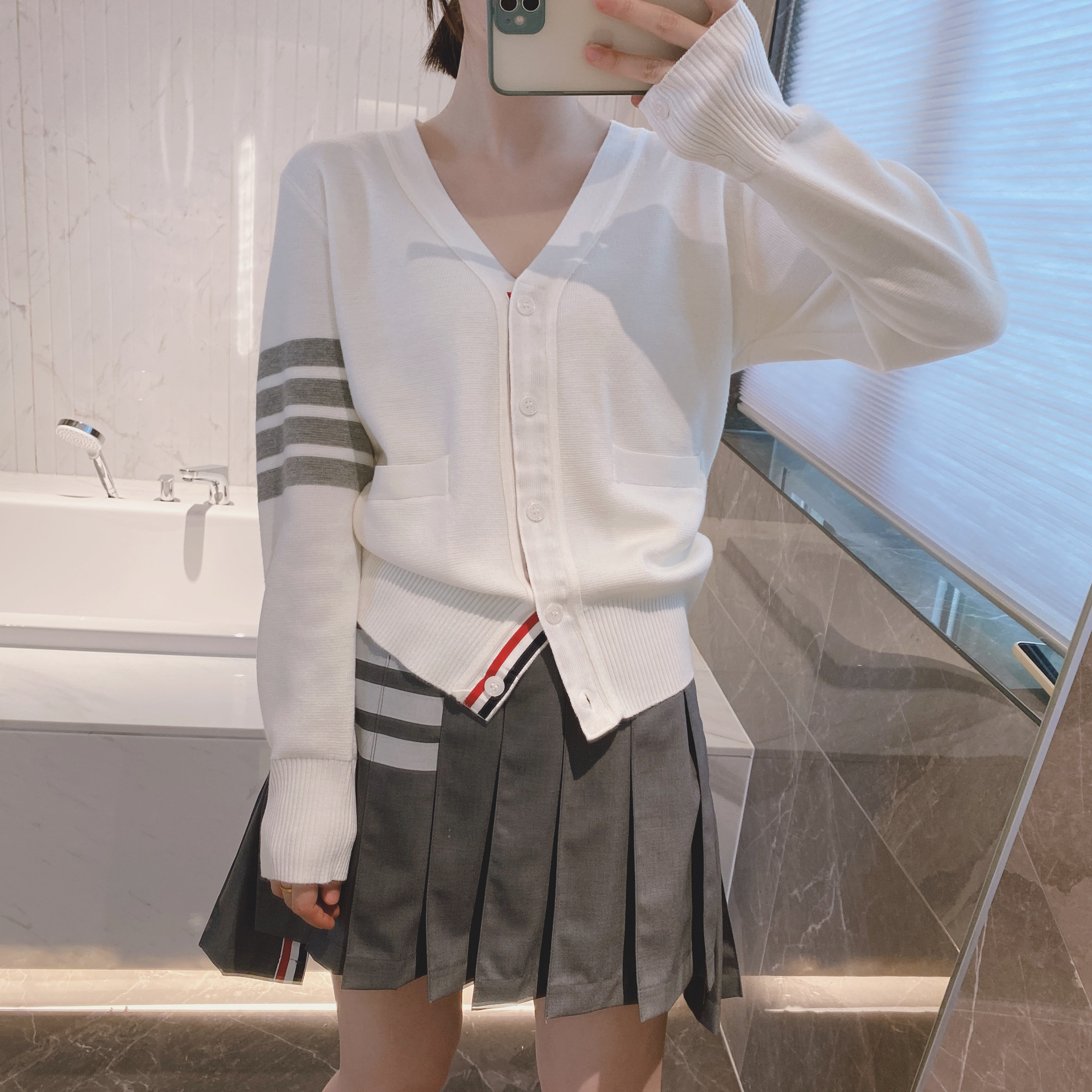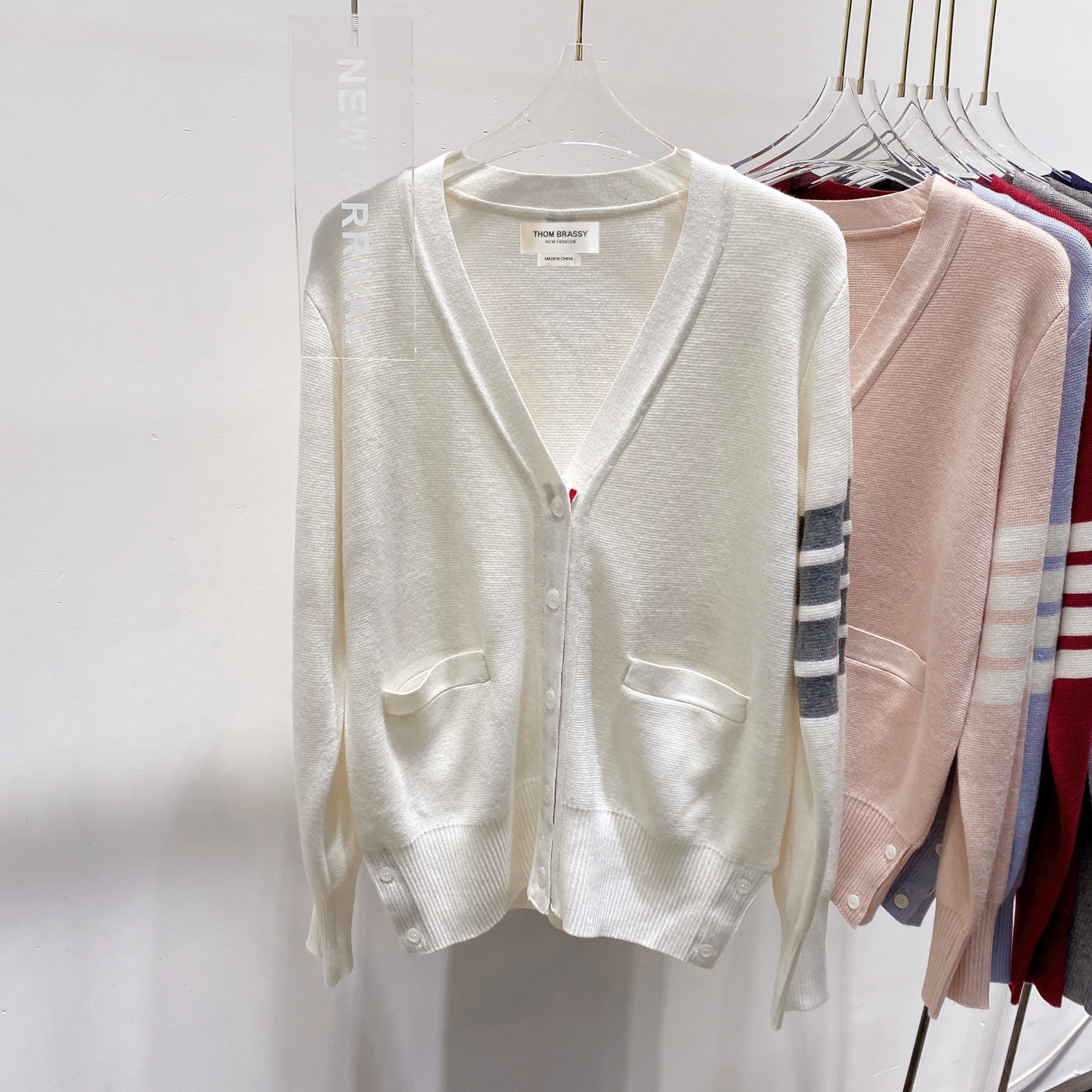 THOM BRASSY 1295TB Пять пуговиц трикотажный V-образный свитер с длинными рукавами блузка