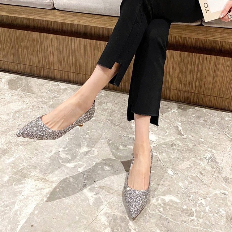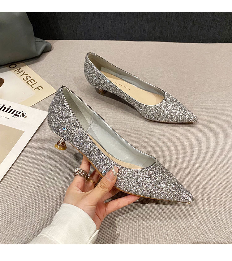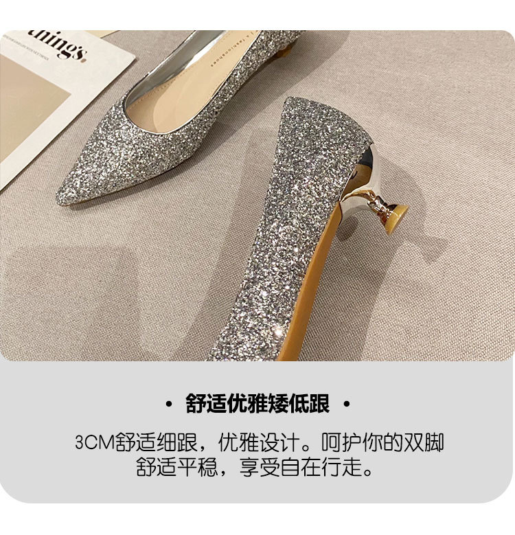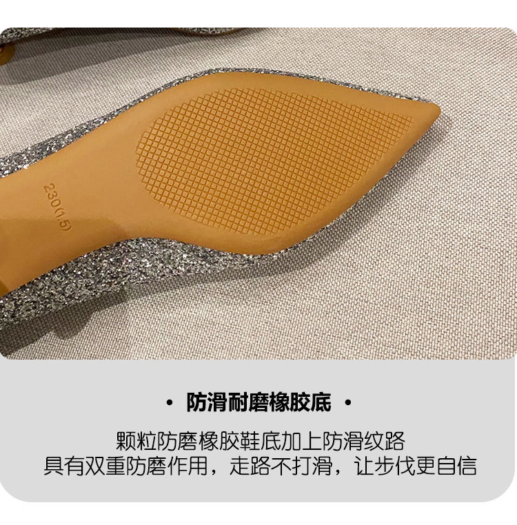 Свадебные туфли Свадебные туфли Свадебные туфли 2024 весна и осень новые серебряные туфли на высоких каблуках женские каблуки помолвка принцесса хрустальные туфли