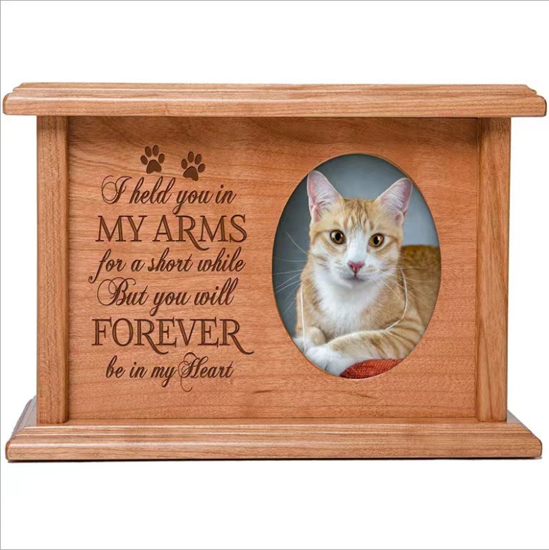 Трансграничная деревянная пепел для домашних животных Деревянная коробка для домашних животных Ретро с фоторамкой Памятная похоронная пепел для животных