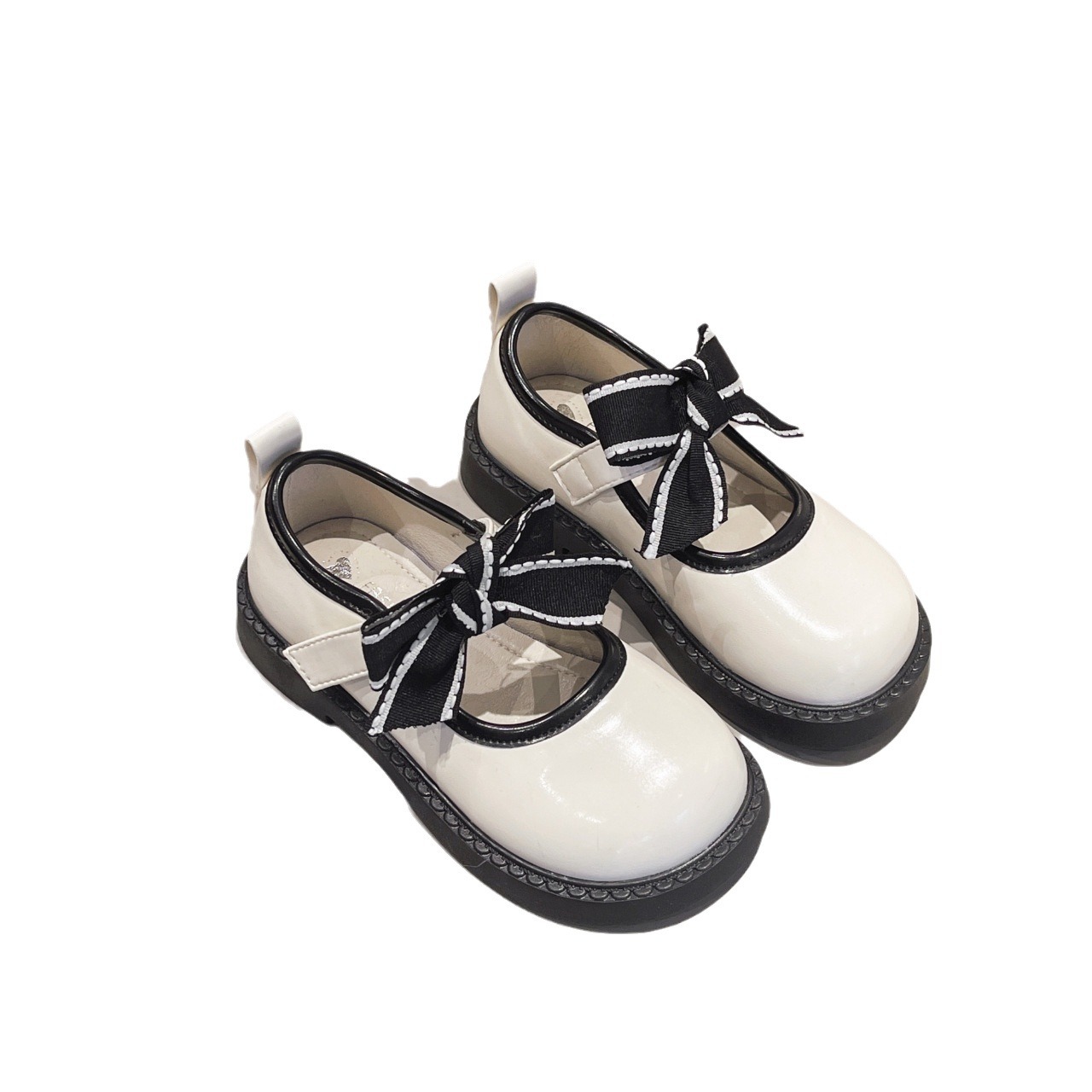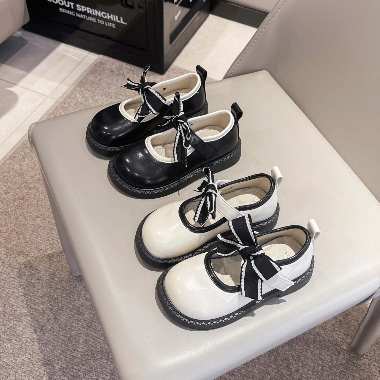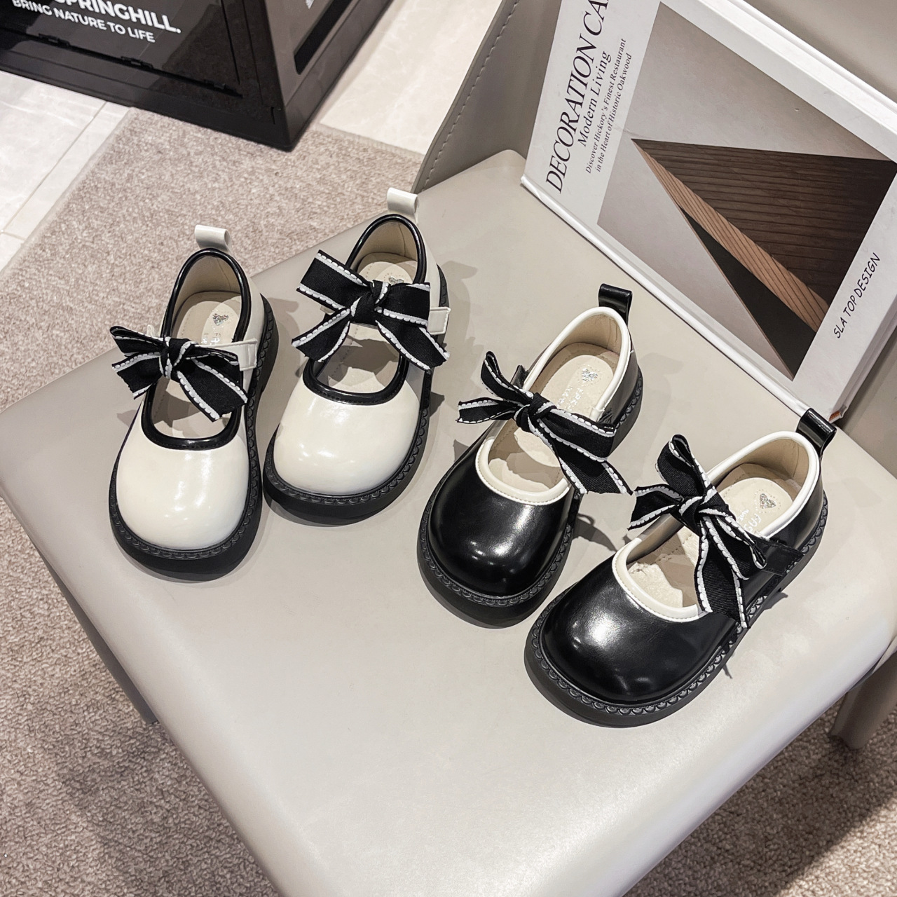 Маленькие кожаные туфли для девочек 2024 весна и осень новый английский стиль черный мягкий фон одиночные туфли для девочек