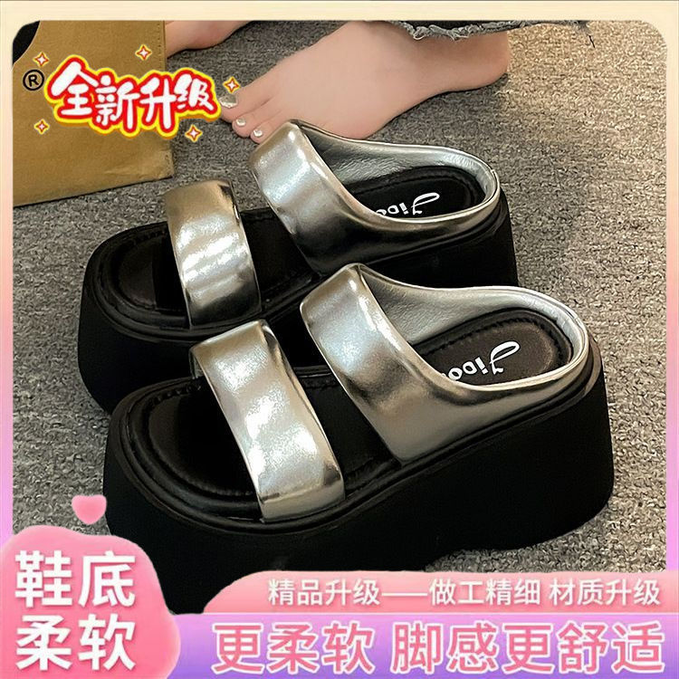 Тапочки на толстой подошве для женской летней верхней одежды, модные сандалии 2024, повседневные и универсальные тапочки на платформе, пляжная обувь.