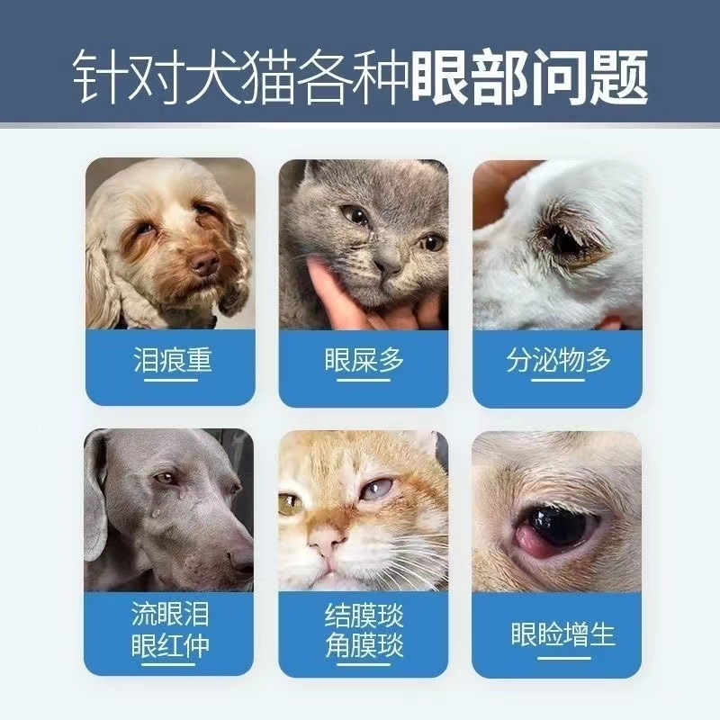 Общее покраснение глаз, отек глаз, слезоточивость, невозможность открыть глаза, конъюнктивит, кератит, блефарит, язвы, противовоспалительное и увлажняющее средство для собак и кошек.