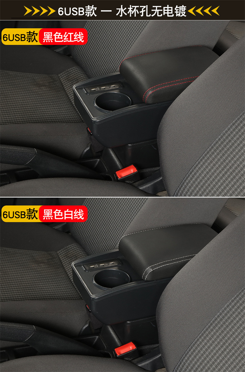 【产品特点】:本产品简约创意、设计独特、大容量收纳空间,适用于各类汽车原车没有中控扶手箱安装使用。主要功能为缓解胳膊疲劳,杂物收纳,保持车内整洁有序,增强坐车时的舒适体感,兼具USB供电和水杯架等功能。