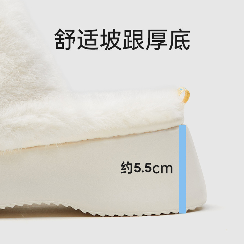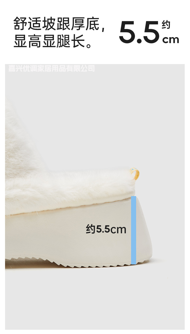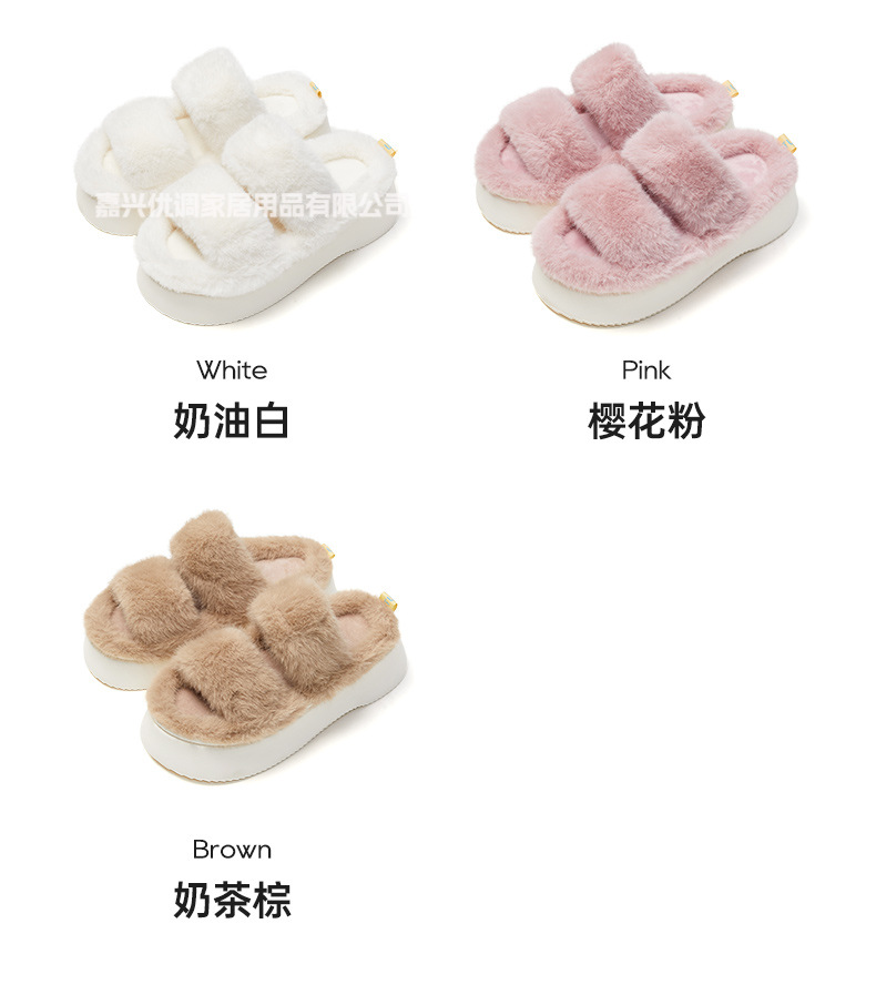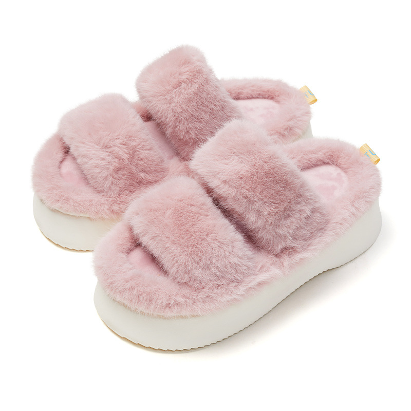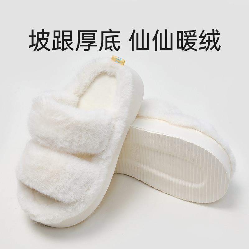 Премиальные розовые тапочки на толстой подошве с мехом 2025 Новые женские осенне-зимние уличные мягкие хлопковые тапочки с высоким каблуком для увеличения роста.