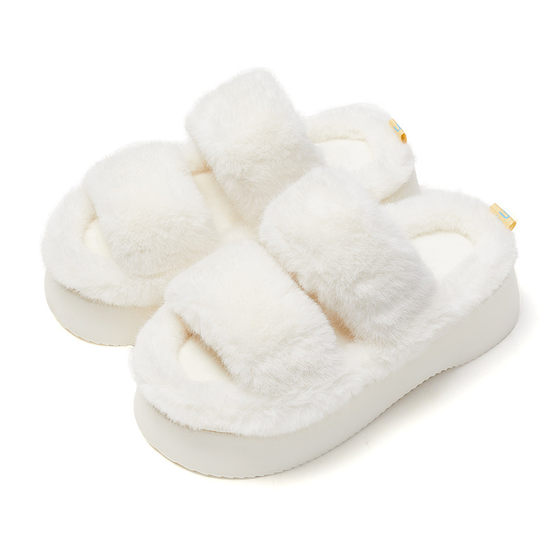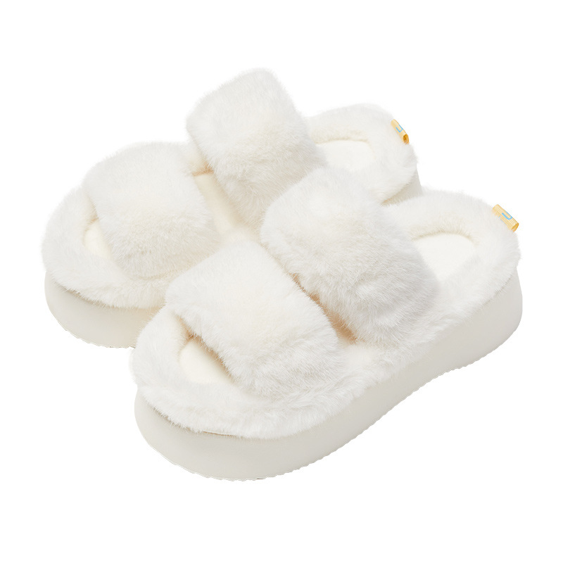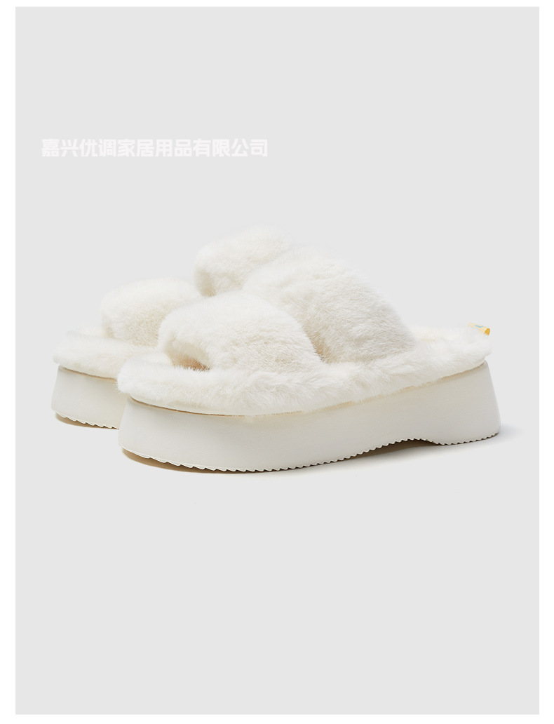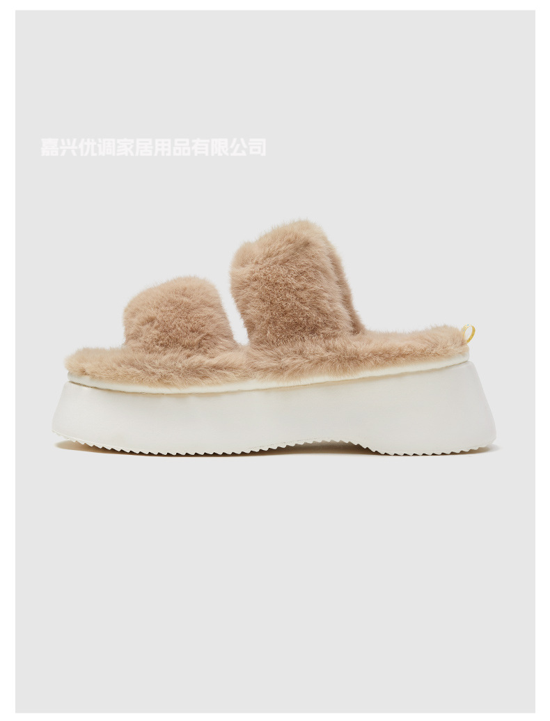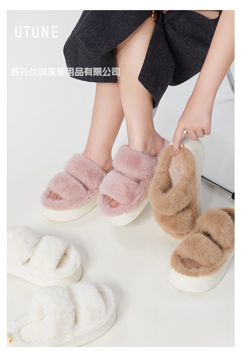 Премиальные розовые тапочки на толстой подошве с мехом 2025 Новые женские осенне-зимние уличные мягкие хлопковые тапочки с высоким каблуком для увеличения роста.