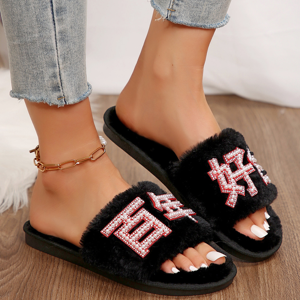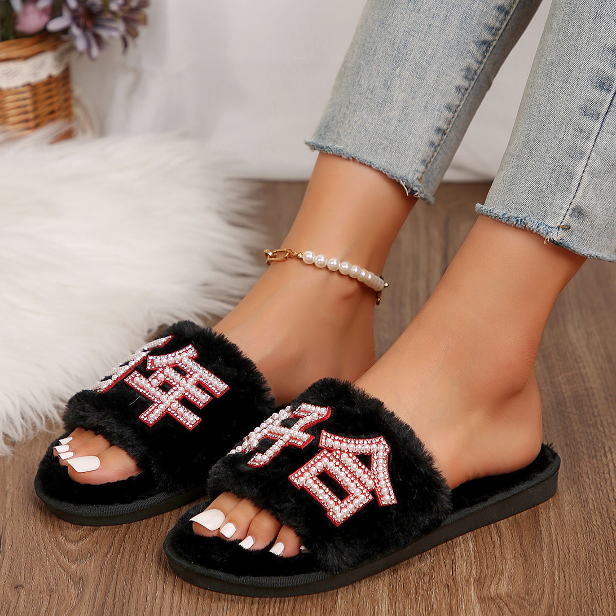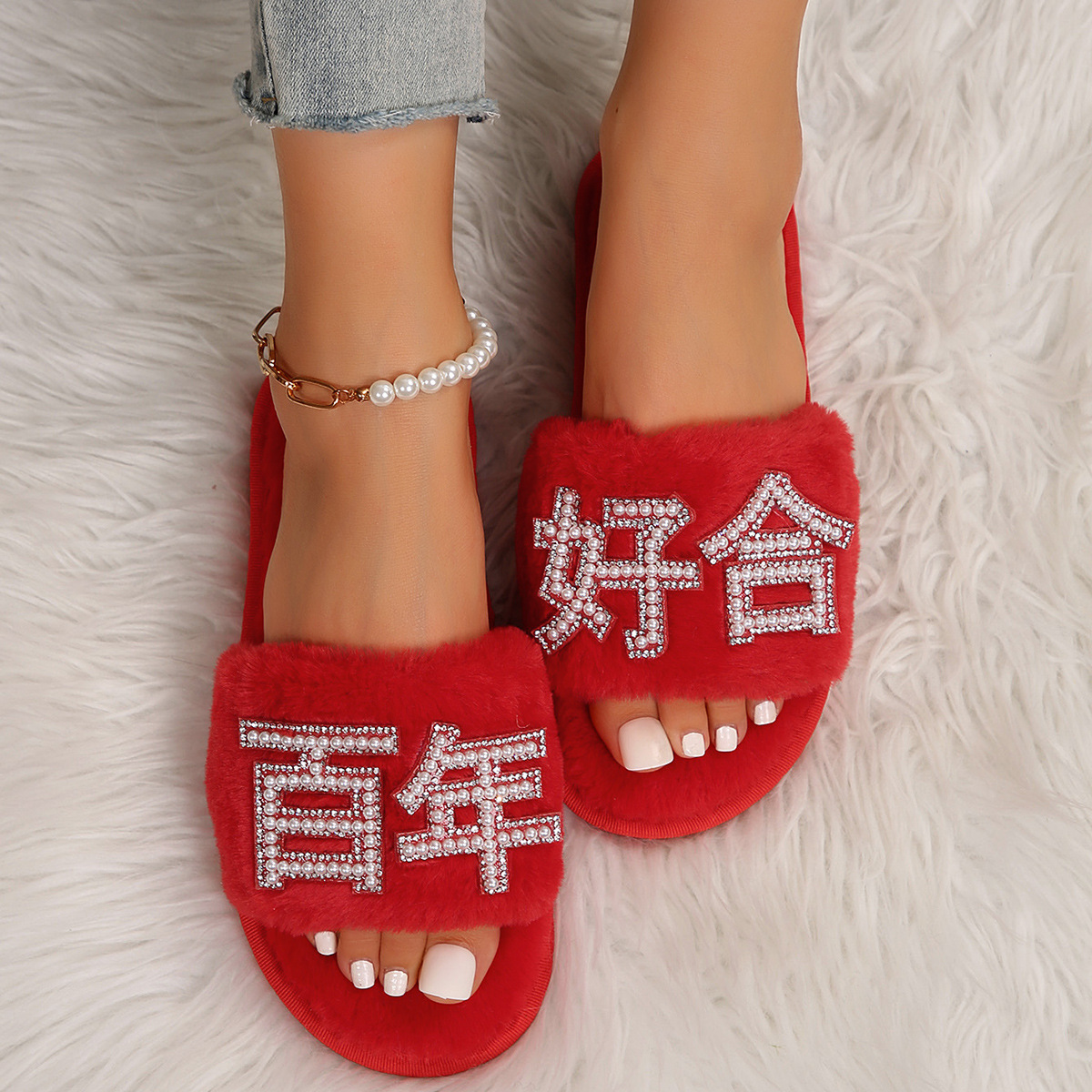 Трансграничные горячие продажи жемчужные английские буквы WIFEY невеста крест плюшевые тапочки свадебная вечеринка подарок свадебный подарок