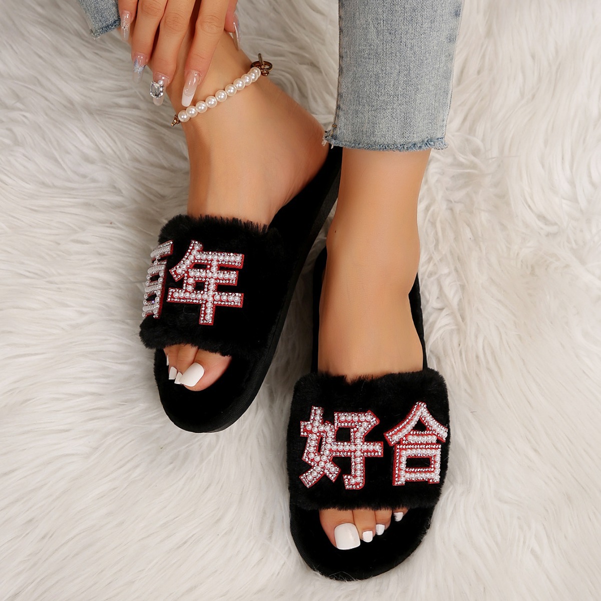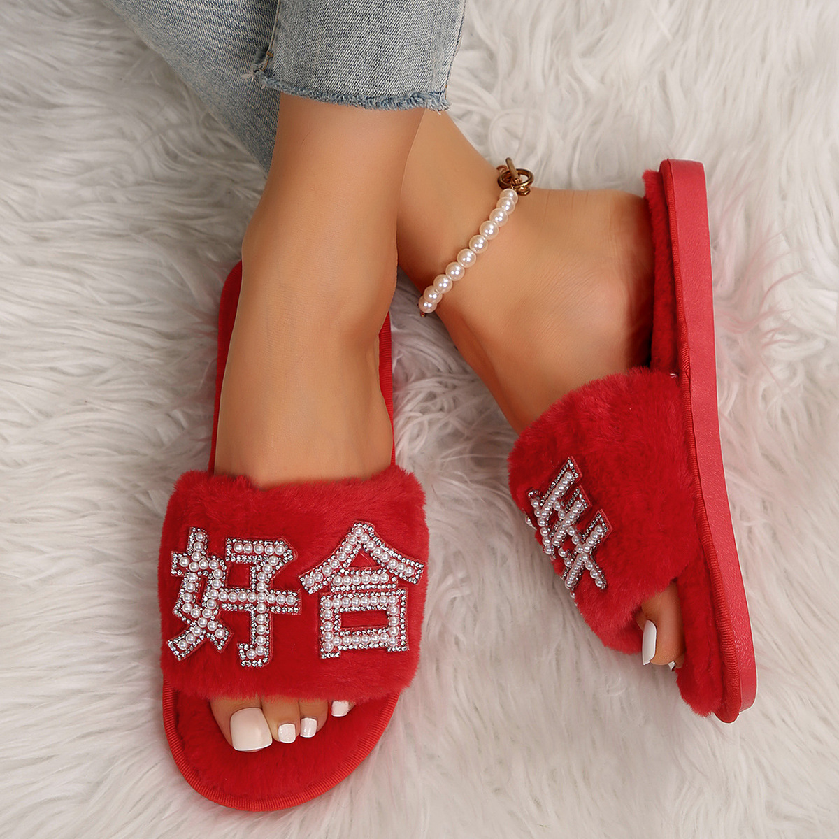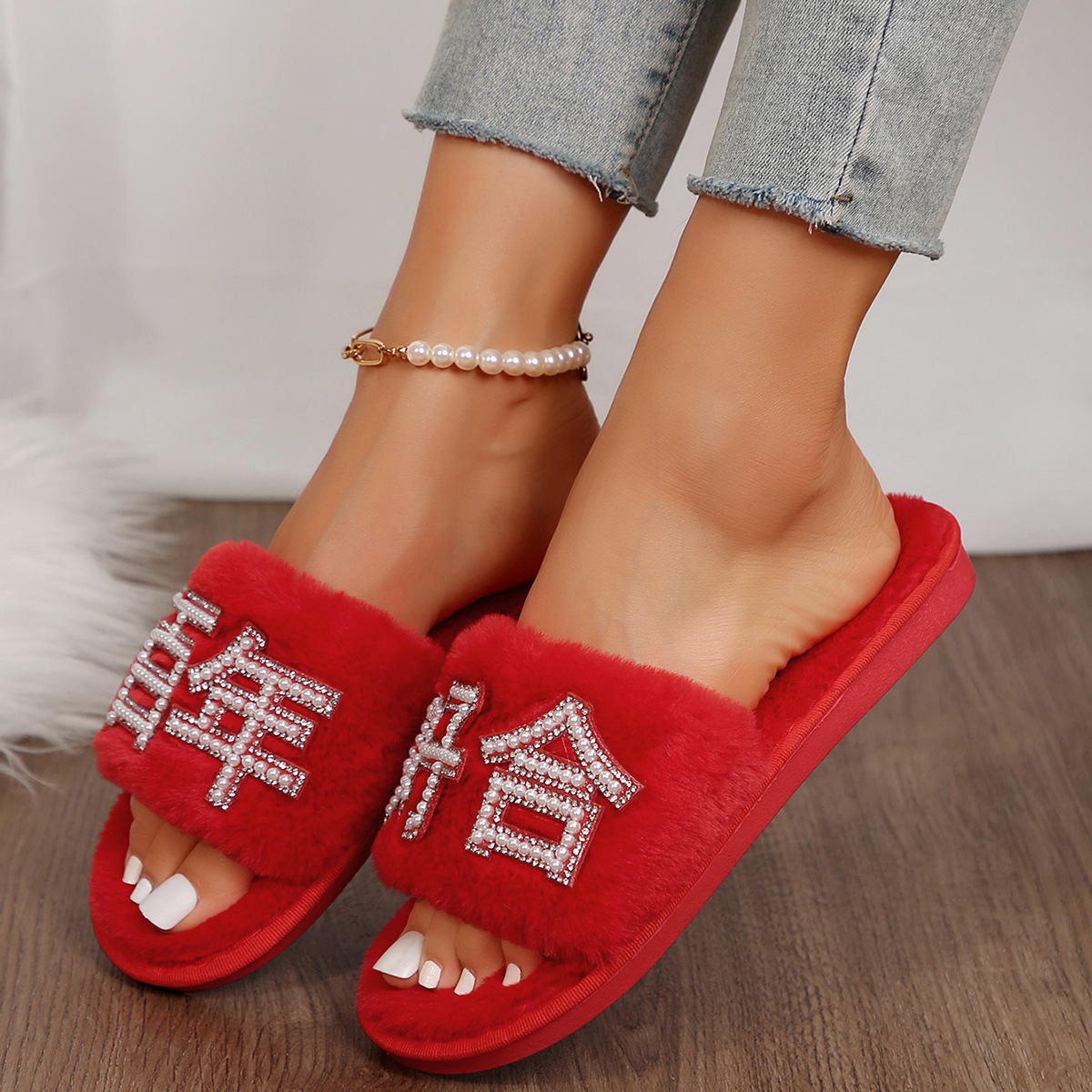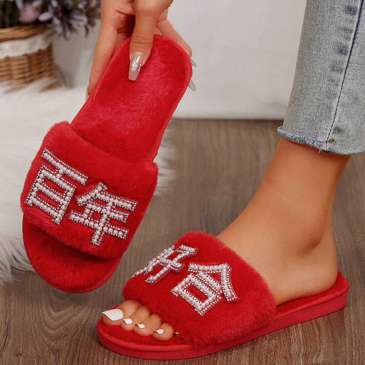 Трансграничные горячие продажи жемчужные английские буквы WIFEY невеста крест плюшевые тапочки свадебная вечеринка подарок свадебный подарок