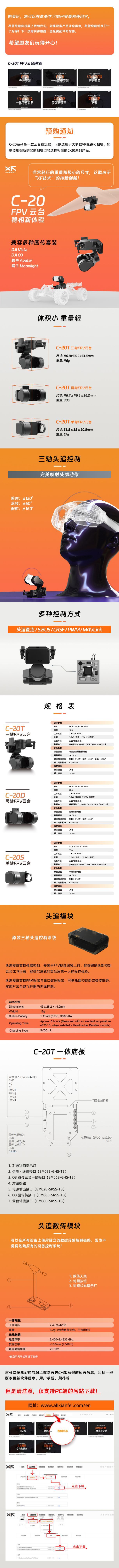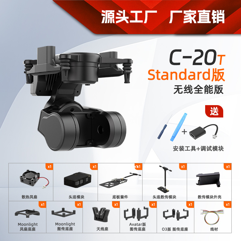 Трехосный стабилизатор Xianfei C-20T для FPV-камер поддерживает камеры O3, O4 и Walksnail, а также функцию отслеживания головы.