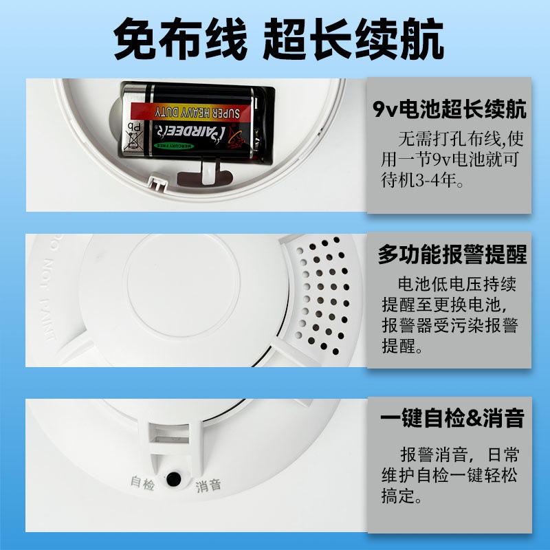 Детектор пожара с датчиком температуры; [Температура + дым] Встроенная сигнализация тепла и дыма