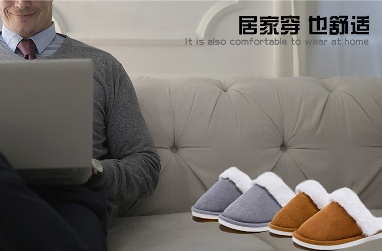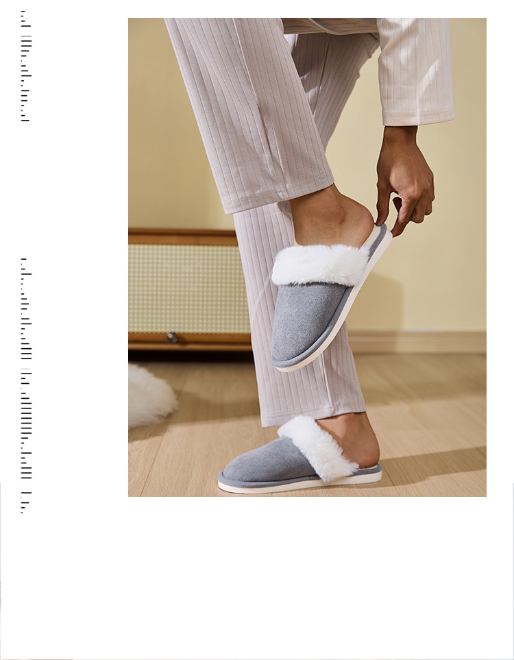 Теплые домашние тапочки на осень и зиму с меховой подкладкой, нескользящие, для мужчин и женщин, с мягкой бархатной подошвой и теплым хлопковым наполнителем.