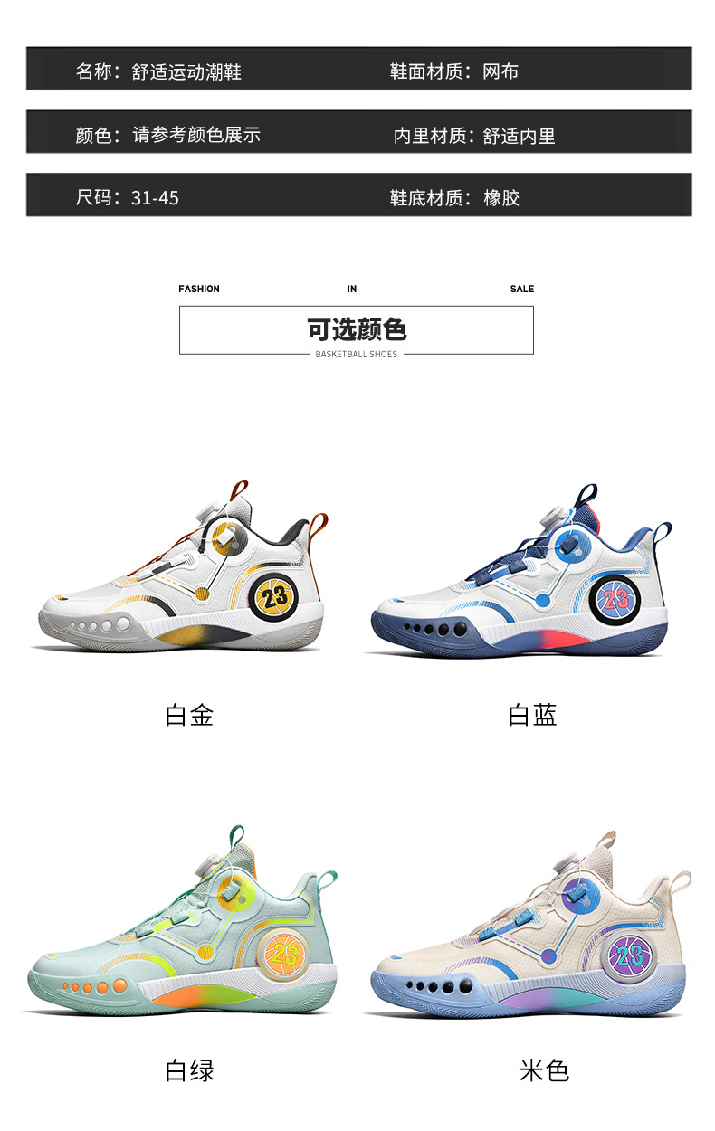 Баскетбольные кроссовки мужские средние и средние дети вращающиеся пуговицы сетчатые дышащие спортивные кроссовки студенческие кроссовки basketball