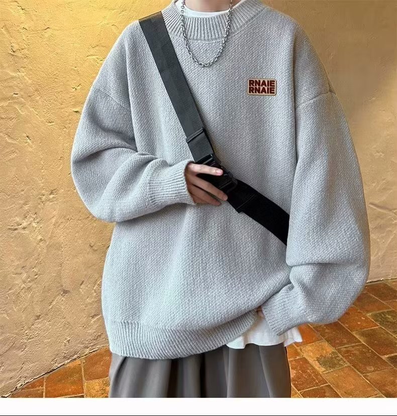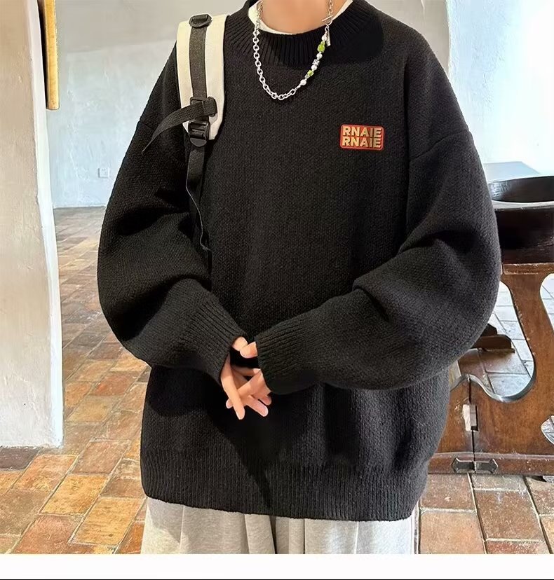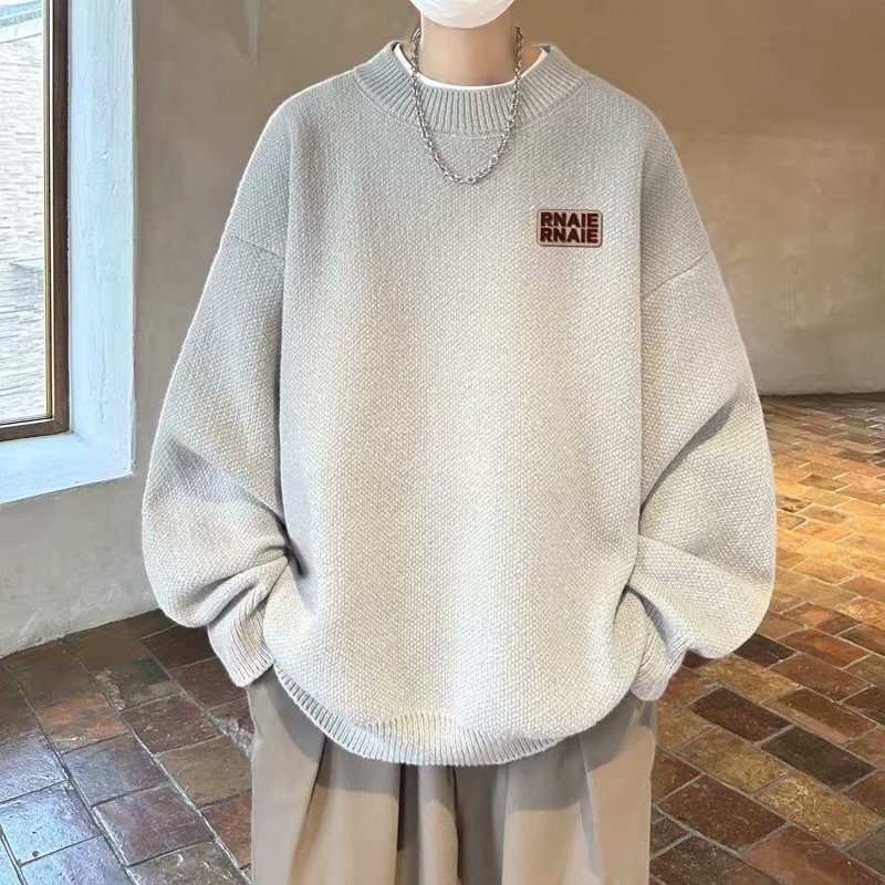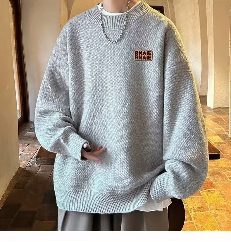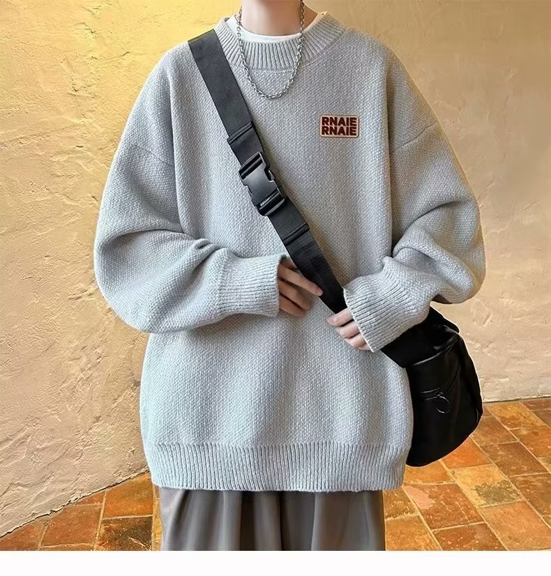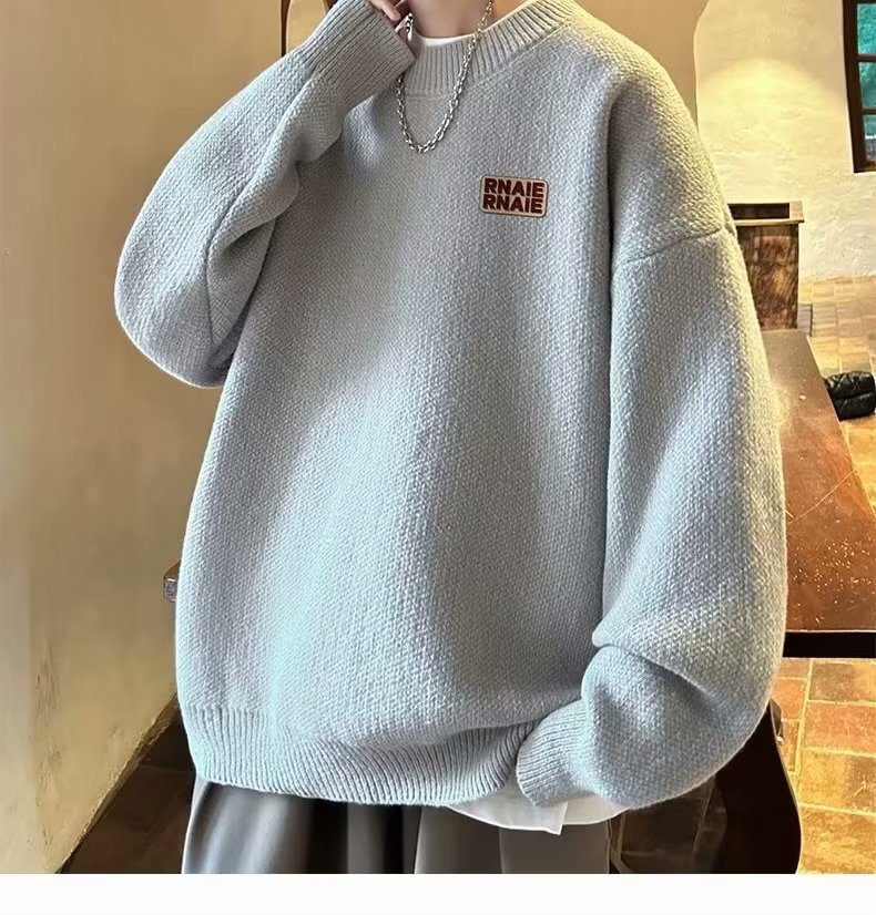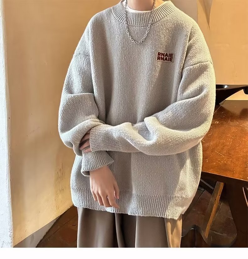 Осенний и зимний толстый свитер мужской корейский тренд свободный японский трикотаж зимний ins гонконгский ветер ленивый свитер