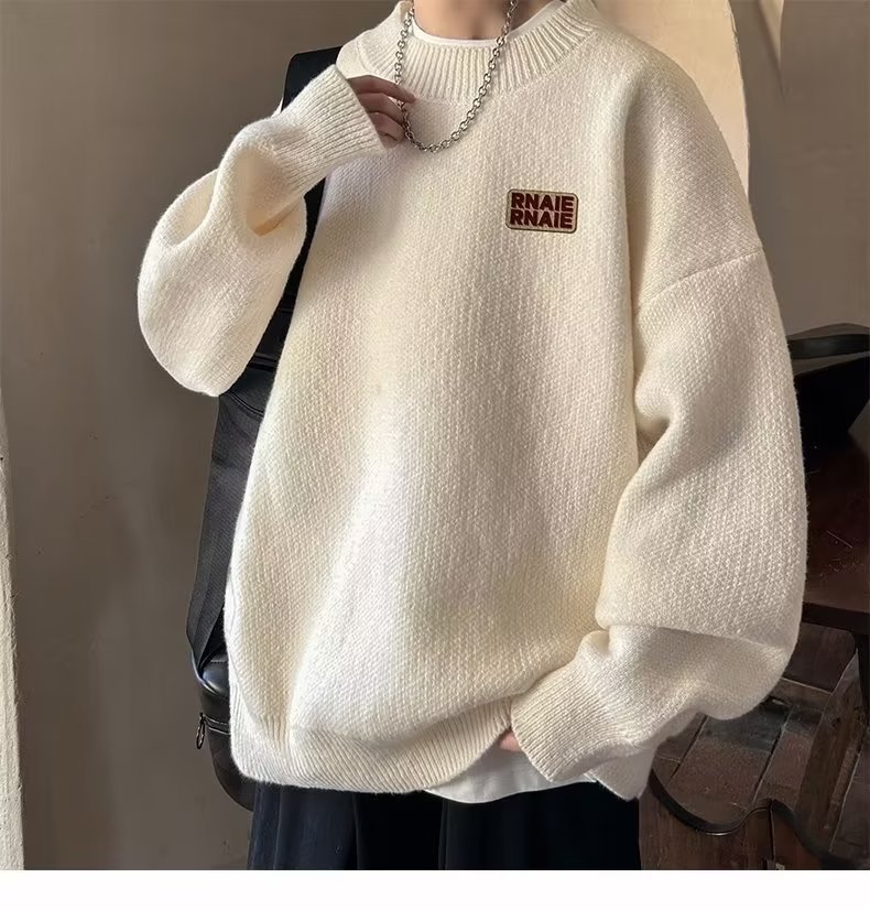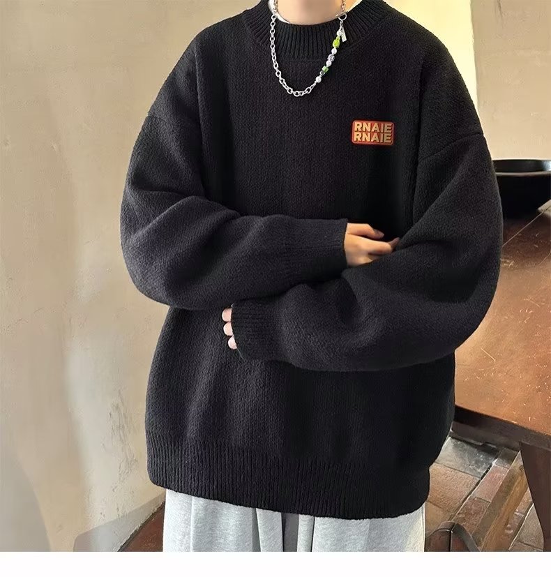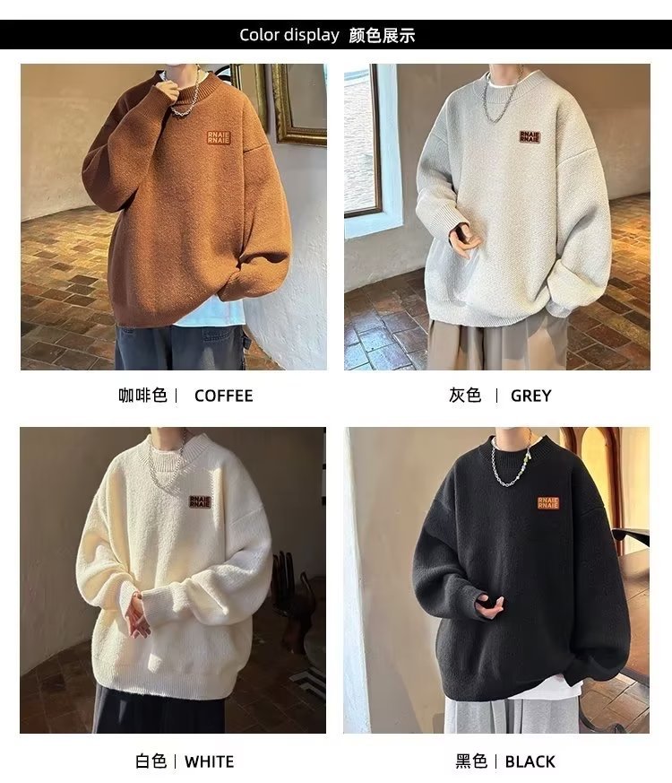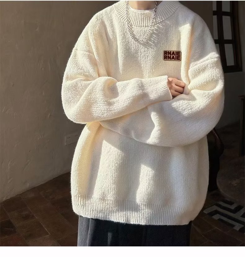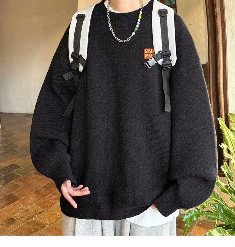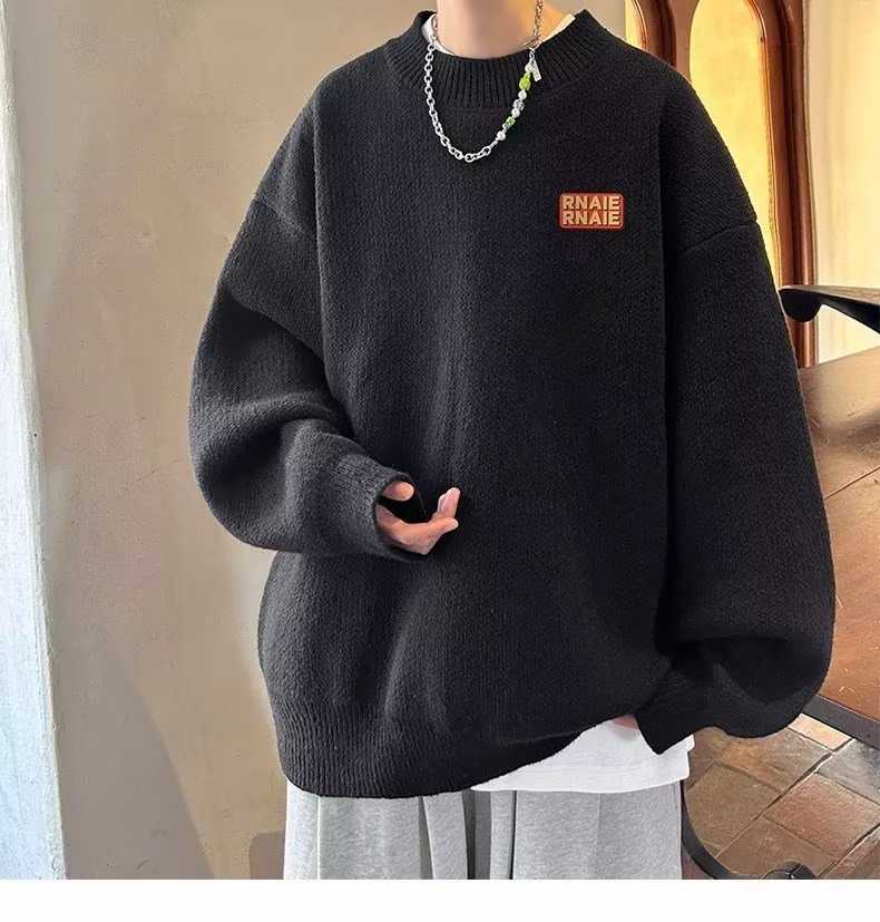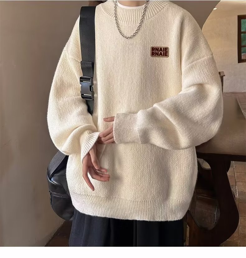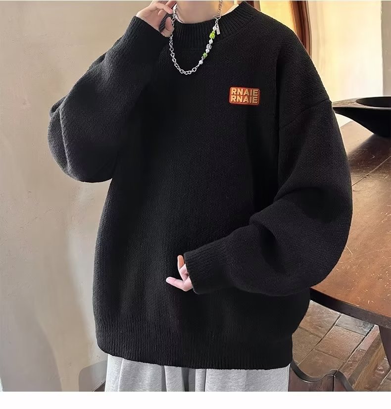 Осенний и зимний толстый свитер мужской корейский тренд свободный японский трикотаж зимний ins гонконгский ветер ленивый свитер