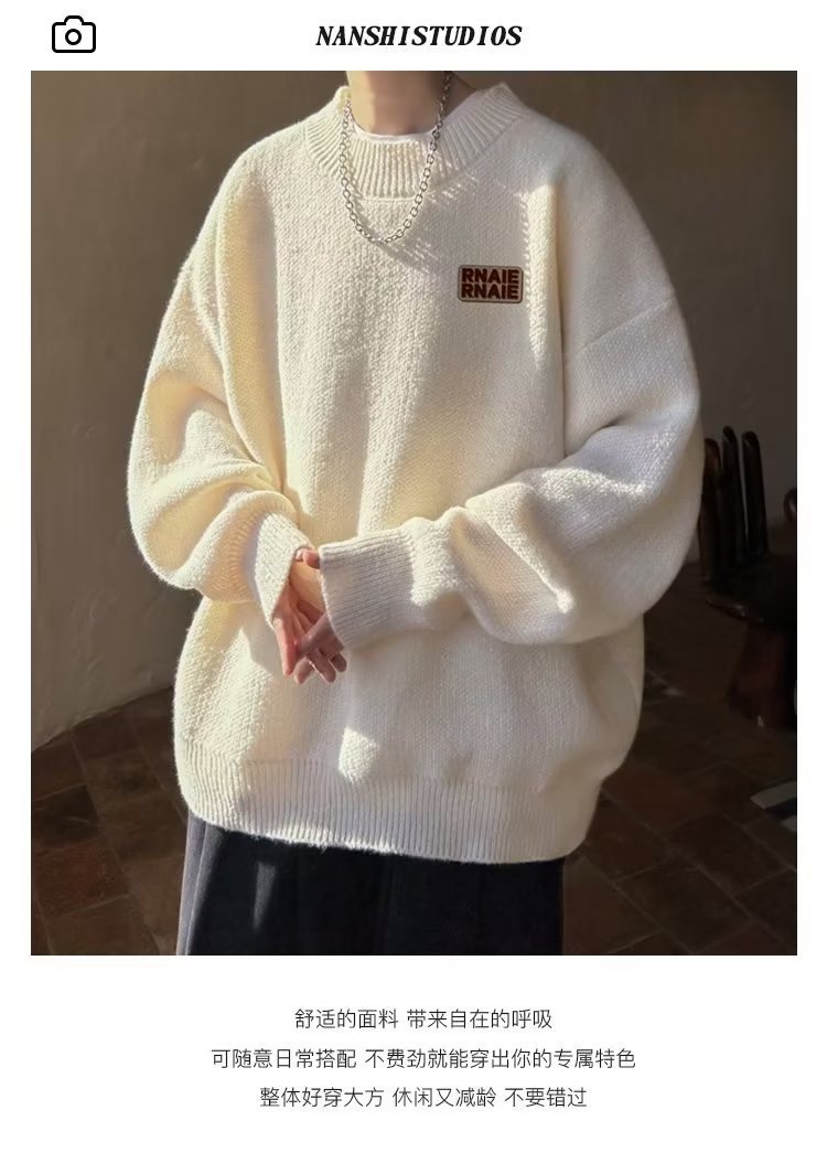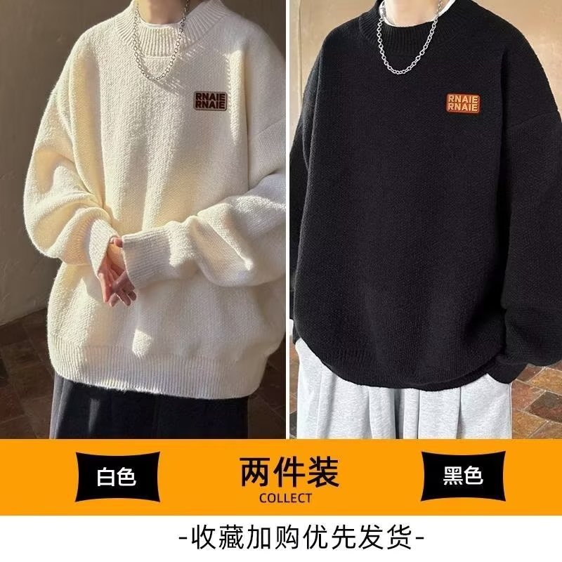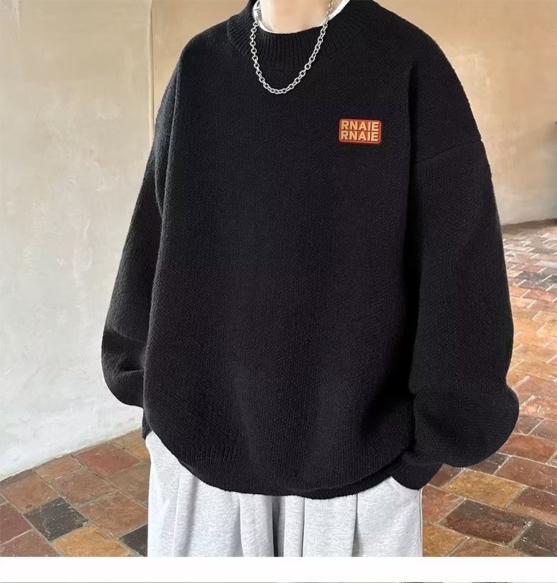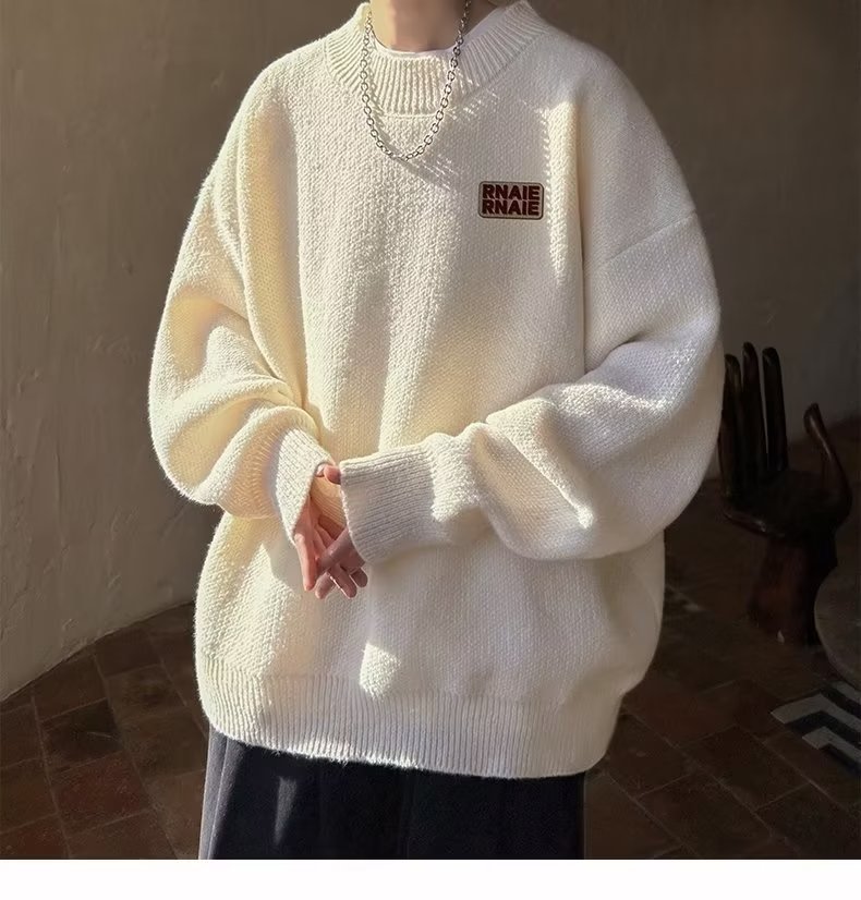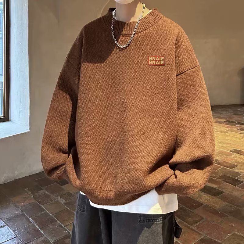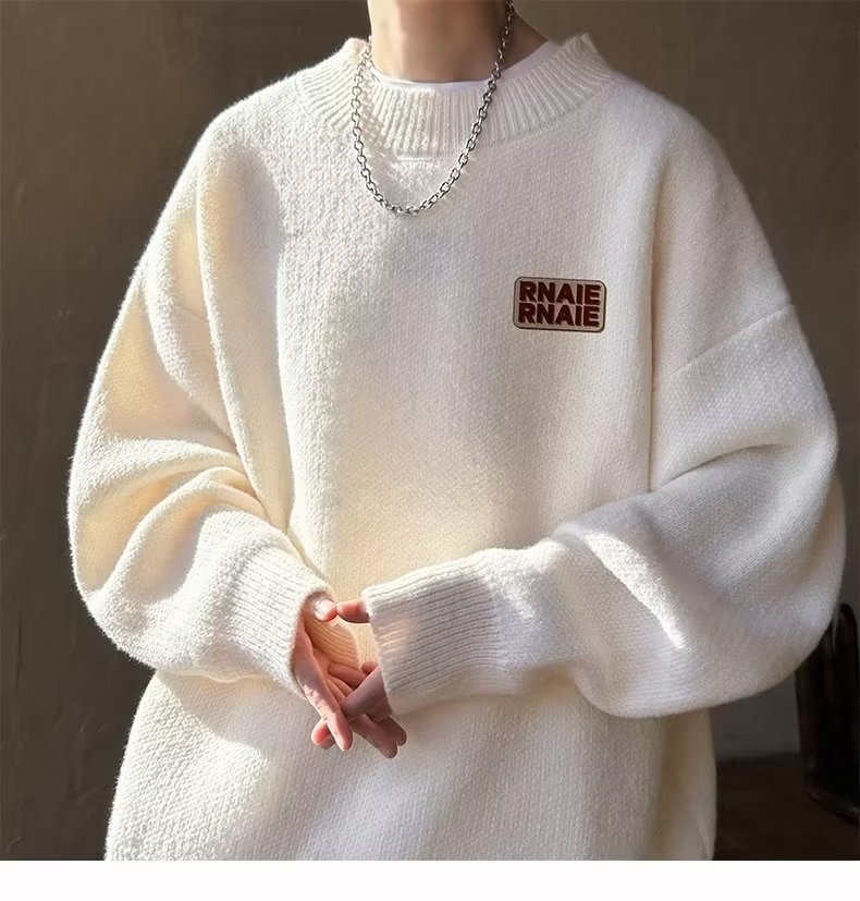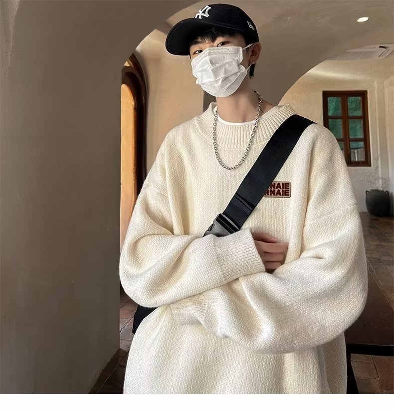 Осенний и зимний толстый свитер мужской корейский тренд свободный японский трикотаж зимний ins гонконгский ветер ленивый свитер