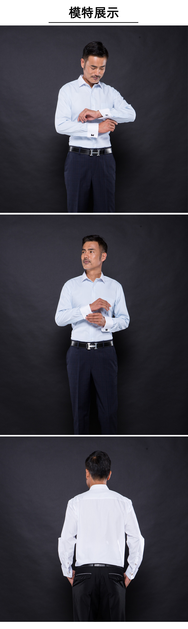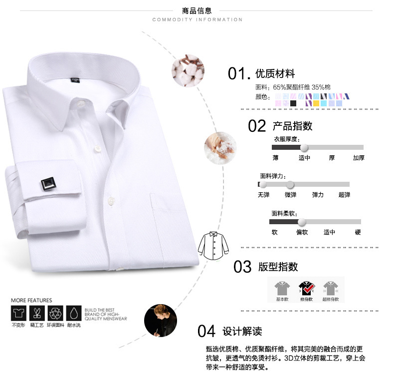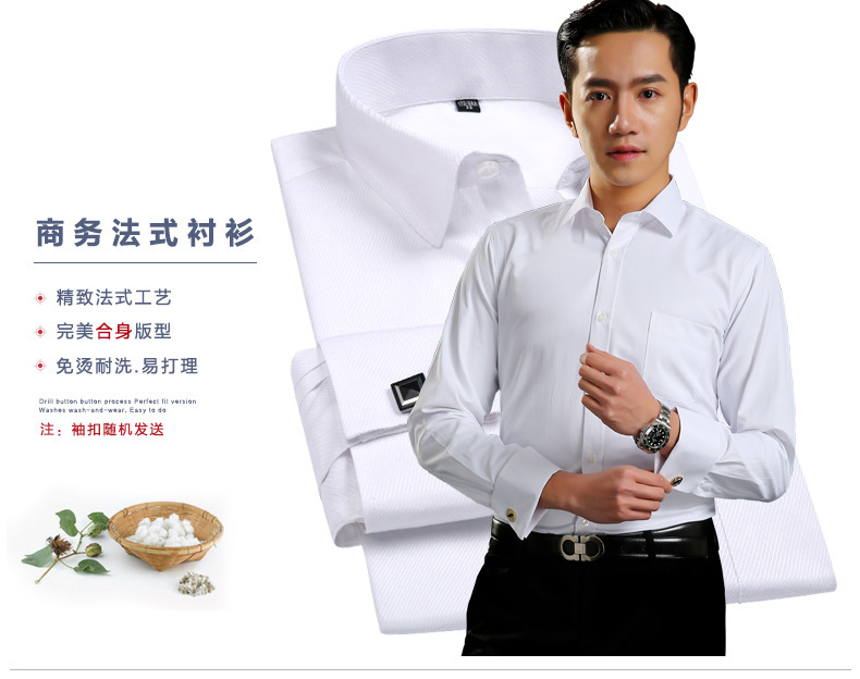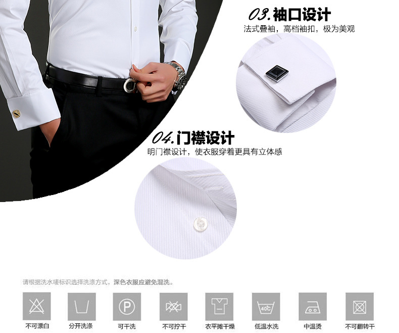 注意说明:此款衬衫为袖扣衬衫,袖扣单独放置在包装贷中,而且是随机配送!!
