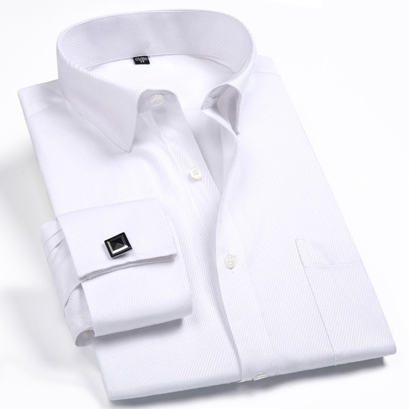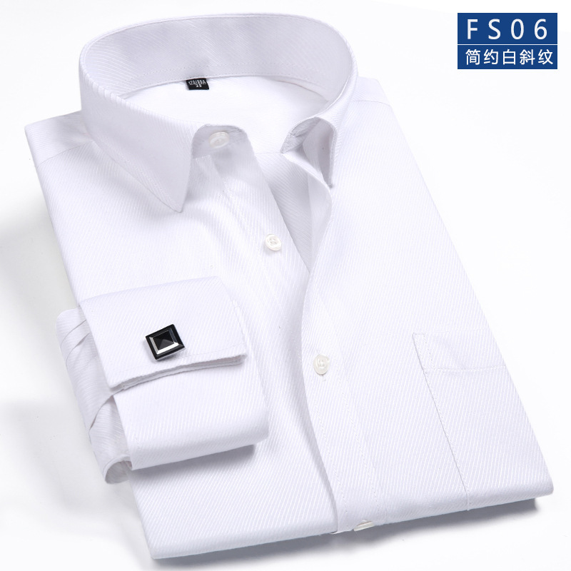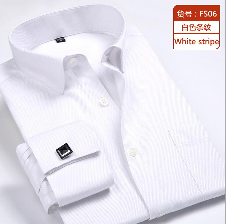 Новая французская деловая рубашка с длинными рукавами мужская мода запонки белый воротничок рубашка свободная мужская полоска большого размера французская подкладка