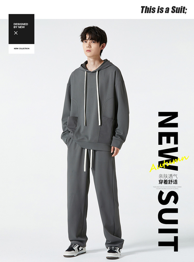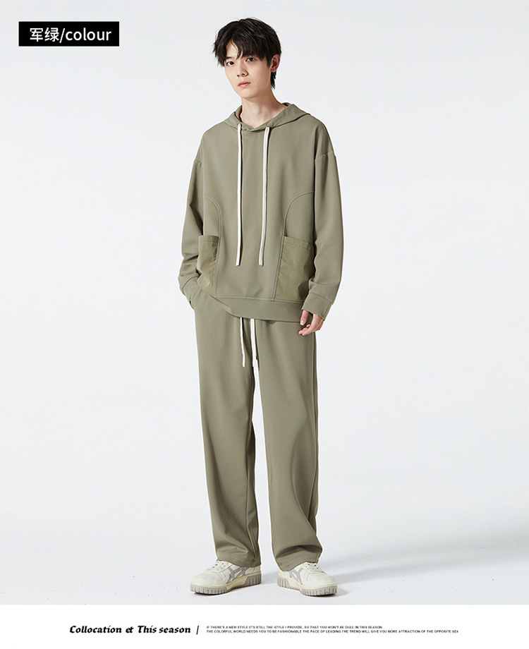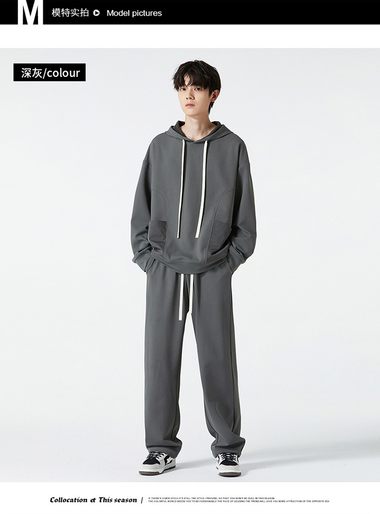 2024 осень и зима новые длинные рукава с капюшоном брюки брюки сплошной цвет могут быть открыты для спорта и отдыха