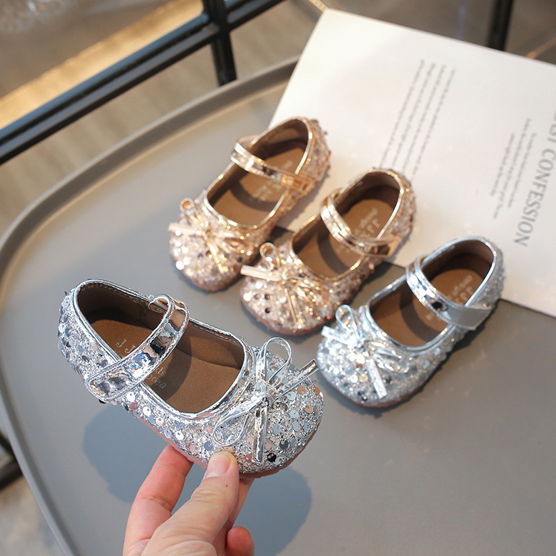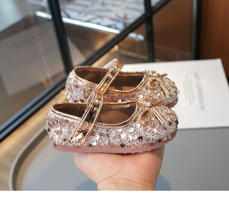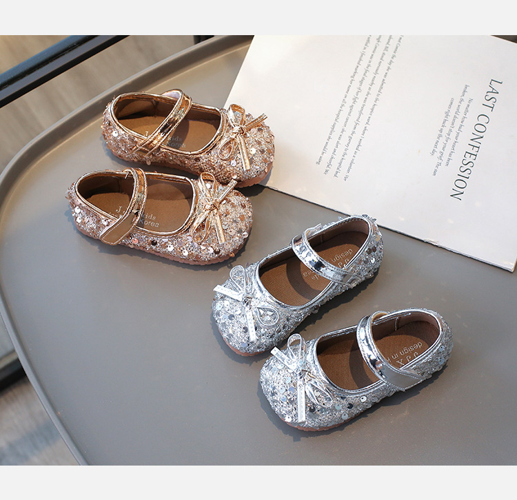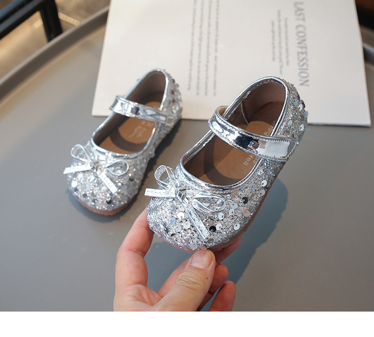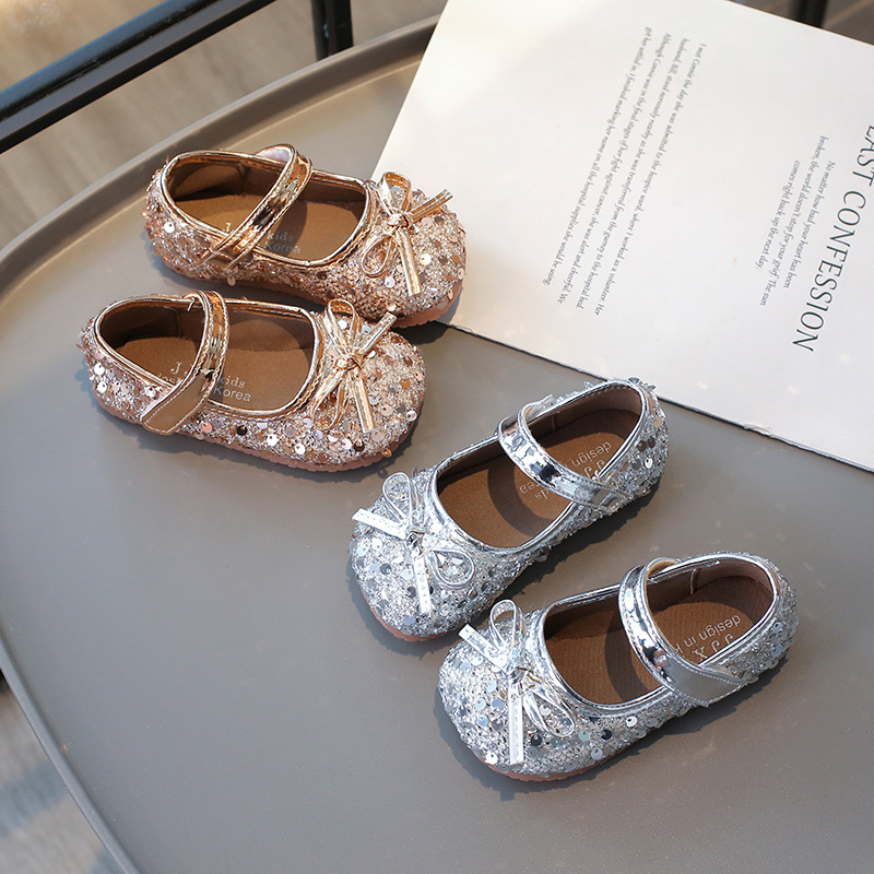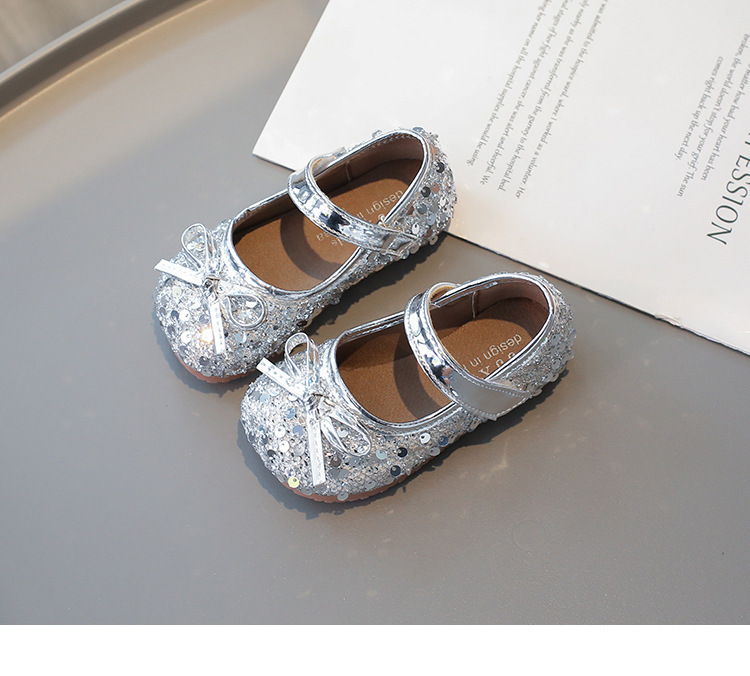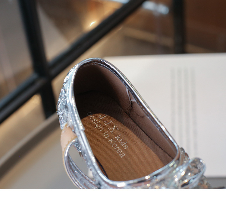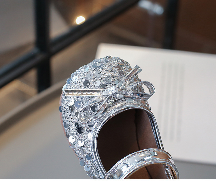 Детские кожаные туфли 2024 Летние корейские девушки с яркими бриллиантами с бантами и мелкими туфлями