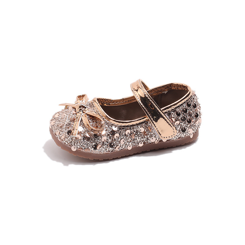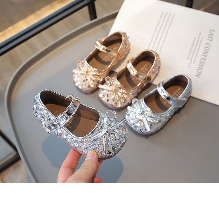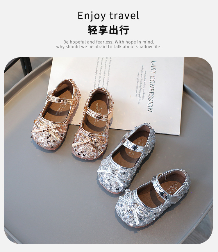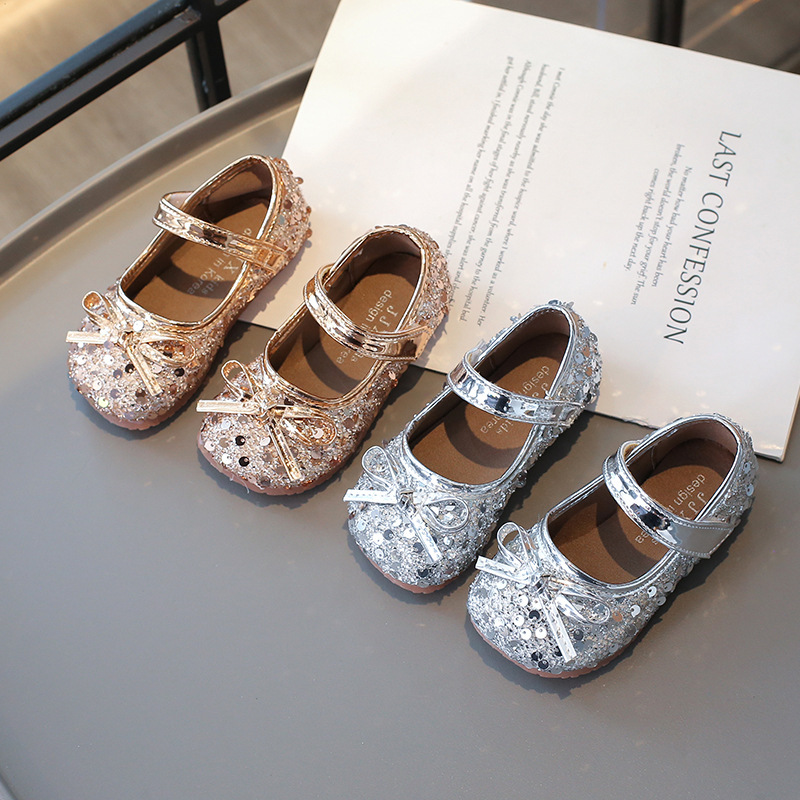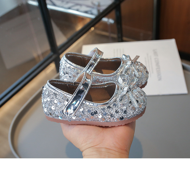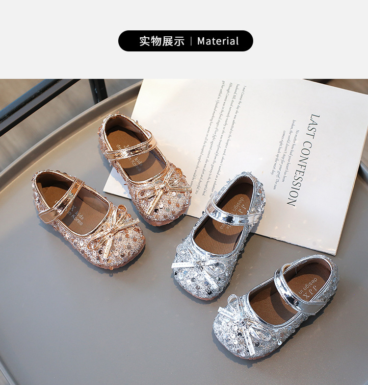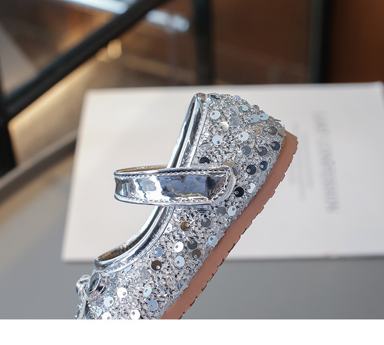 Детские кожаные туфли 2024 Летние корейские девушки с яркими бриллиантами с бантами и мелкими туфлями