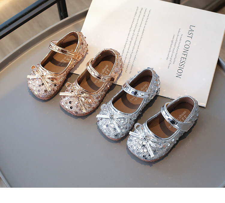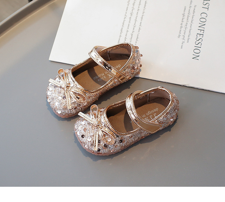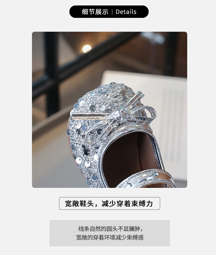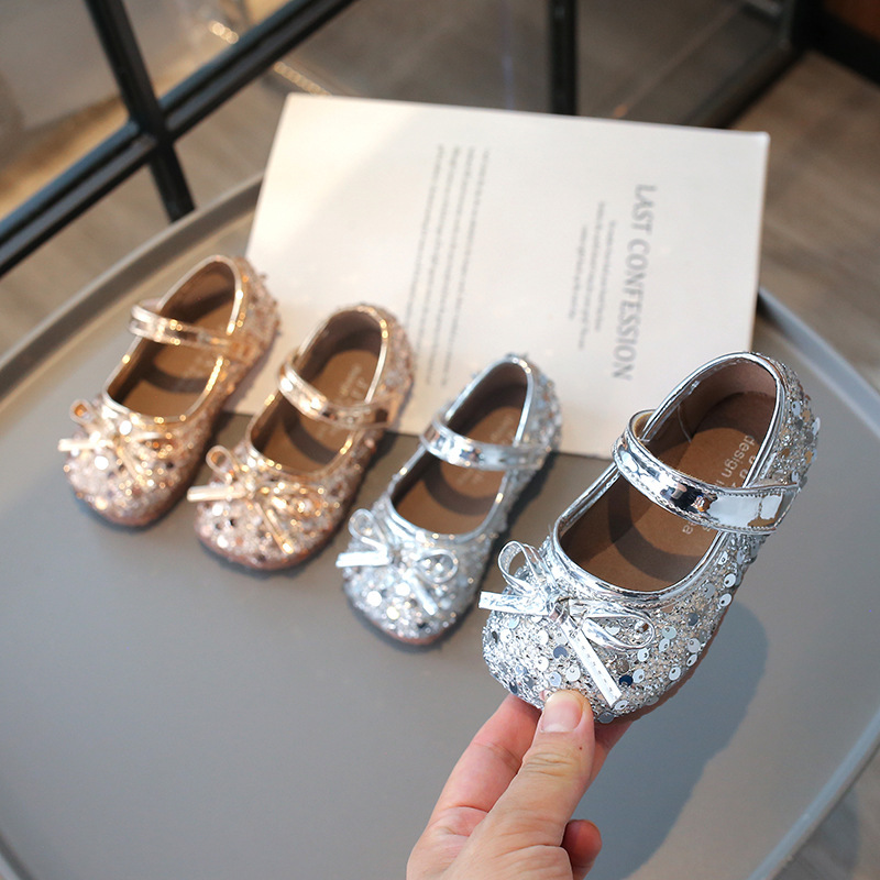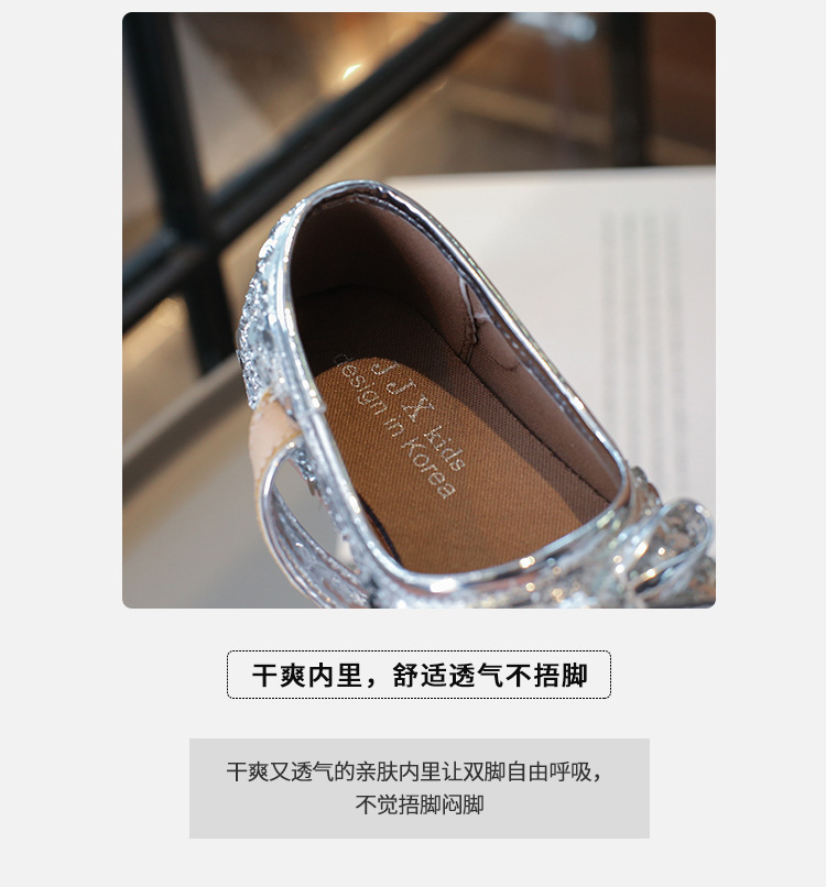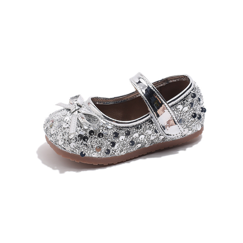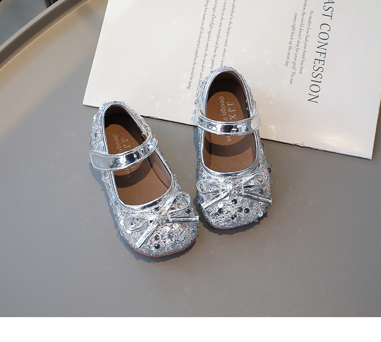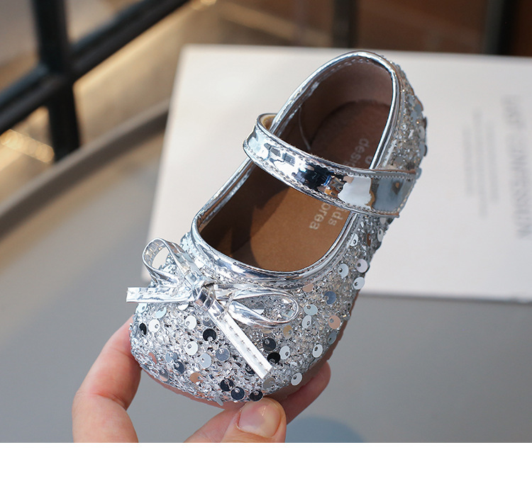 Детские кожаные туфли 2024 Летние корейские девушки с яркими бриллиантами с бантами и мелкими туфлями