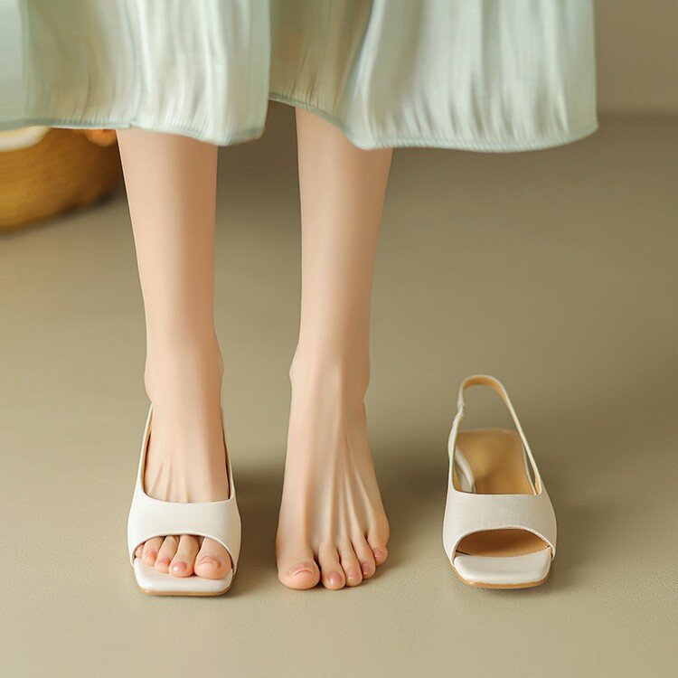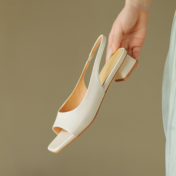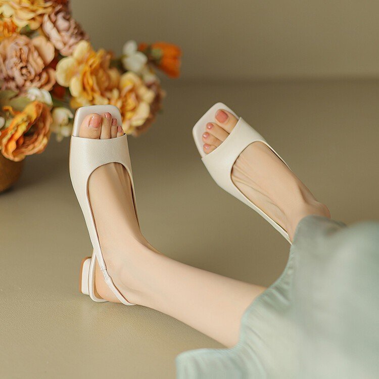 Французские минималистские летние 2024 новые задние пустые туфли на высоких каблуках темперамент квадратная голова римские туфли на каблуках женские