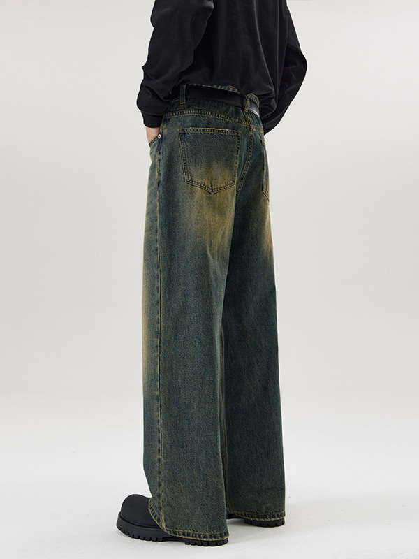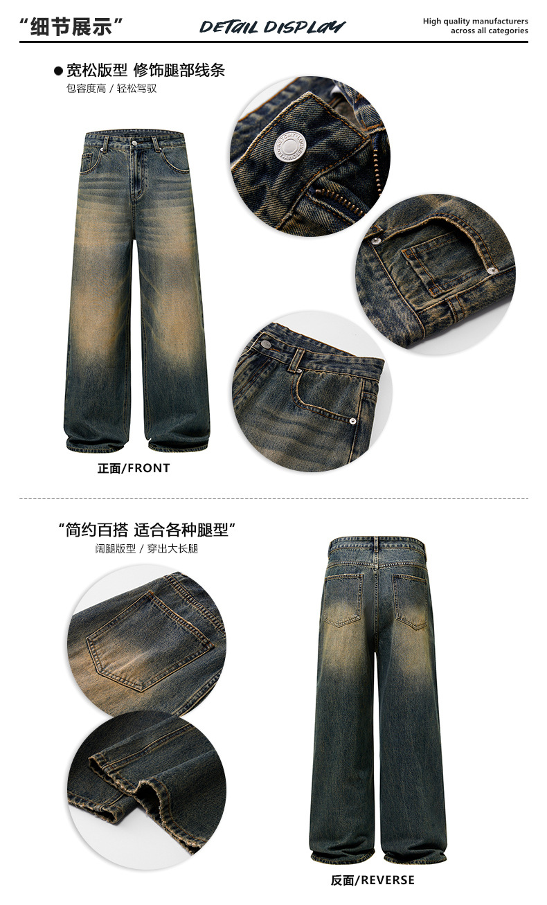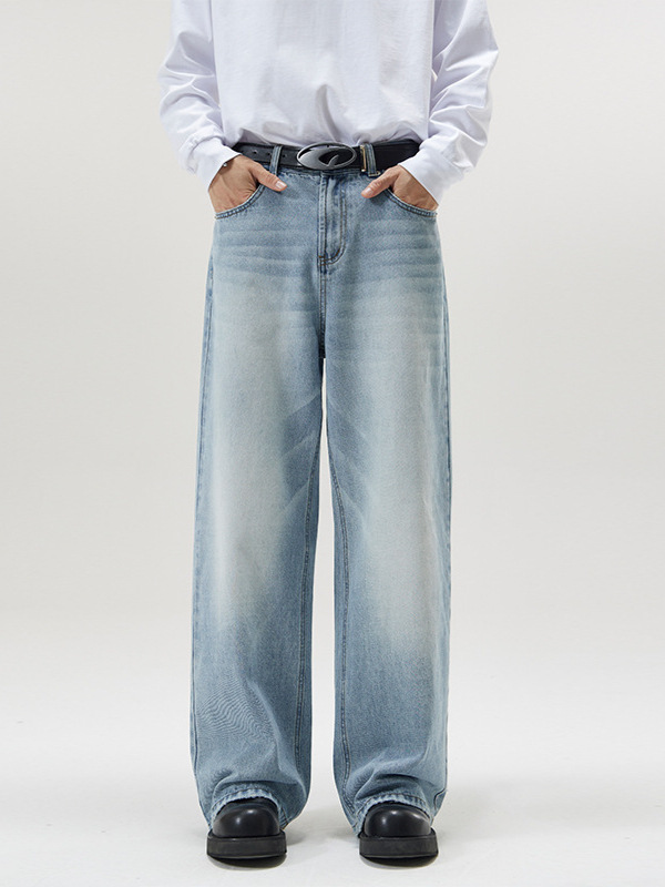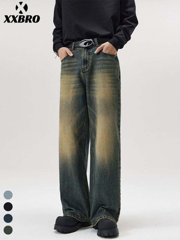 Xxbro мужская одежда # американская высокая улица стирает старые модные джинсы перетаскивания пол cleanfit свободные прямые брюки