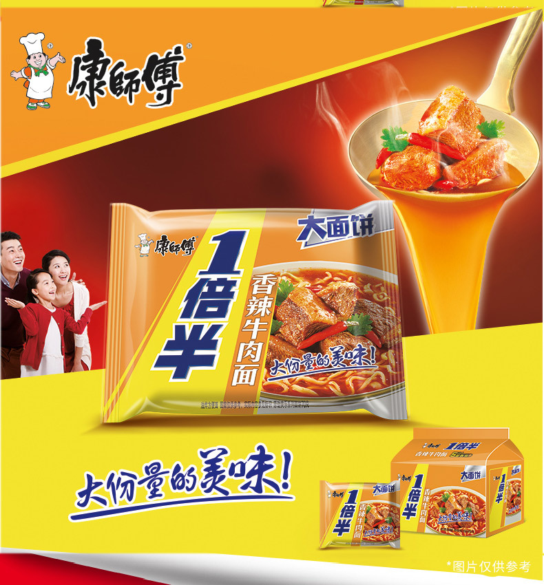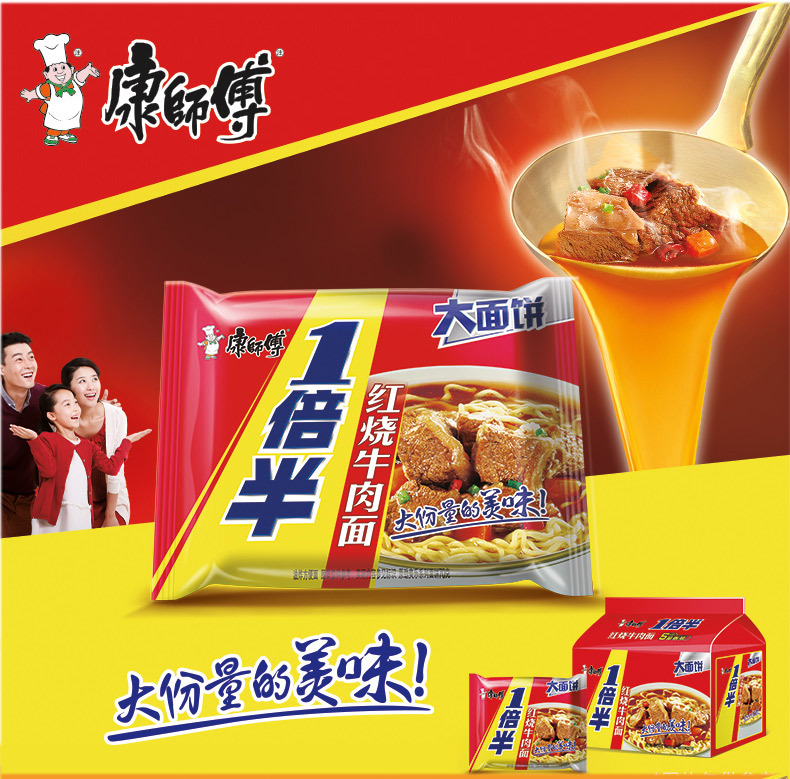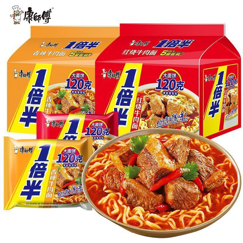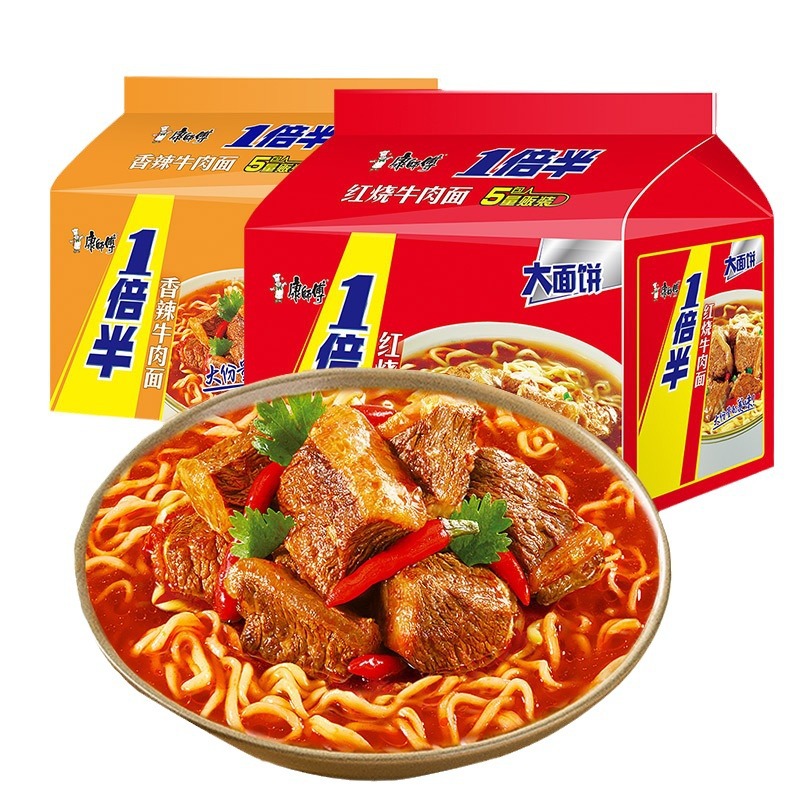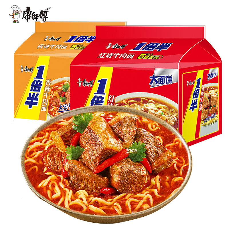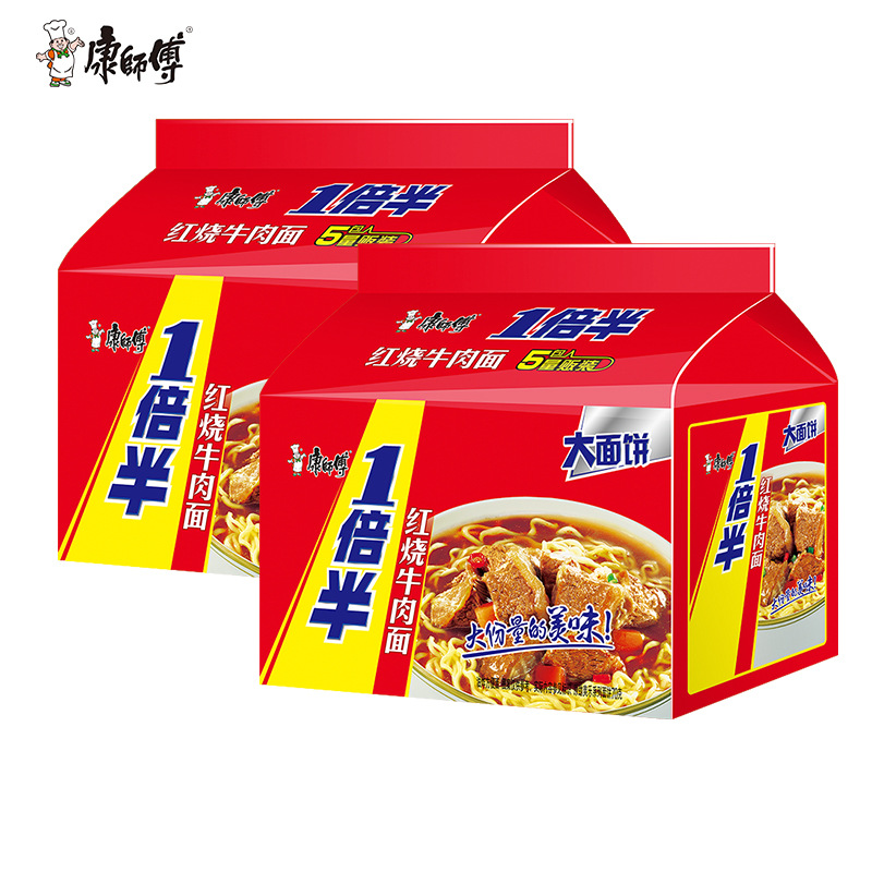 Master Kong вдвое больше лапши быстрого приготовления, тушеная говяжья лапша, большой пакет с лапшой быстрого приготовления