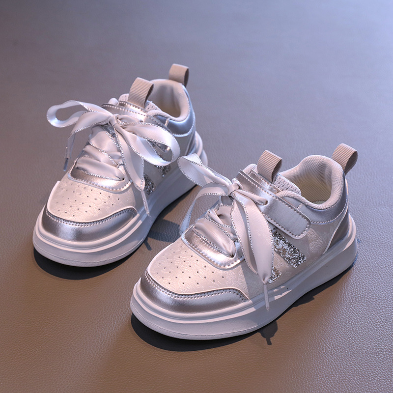 Низкие кроссовки для девочек, белые детские туфли среднего и большого размера, новый весенний стиль 2025 года, спортивная обувь для маленьких девочек, модная и универсальная детская обувь.