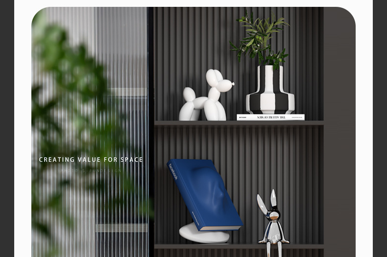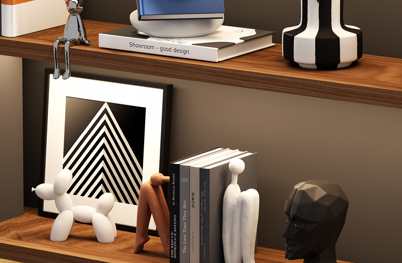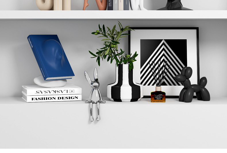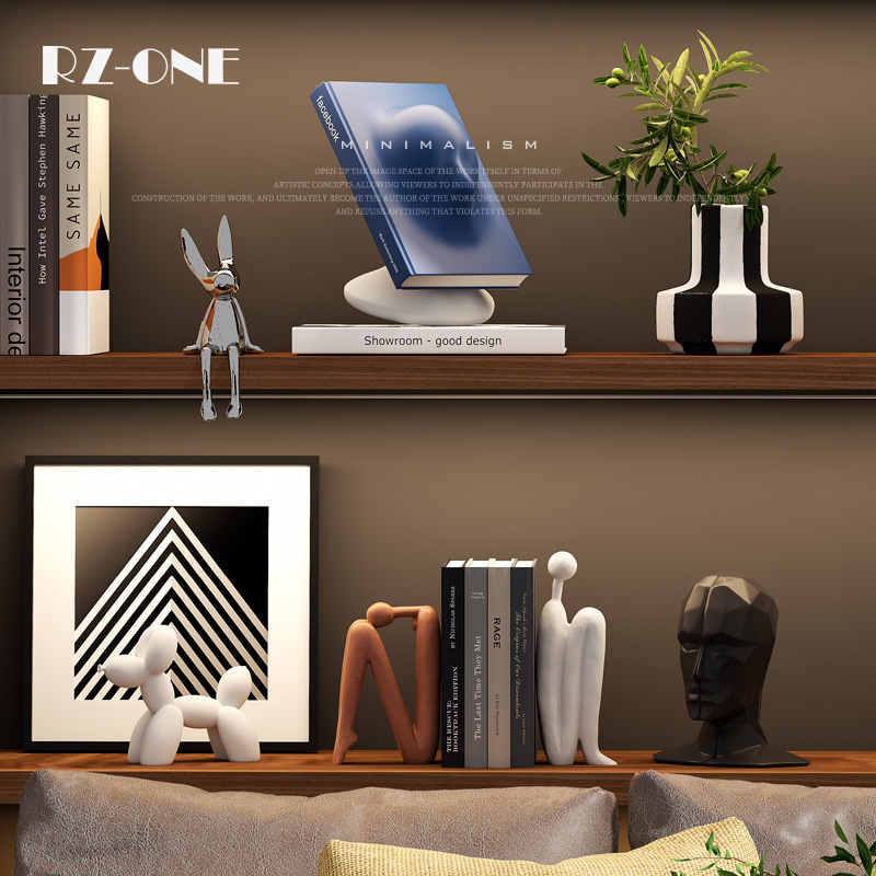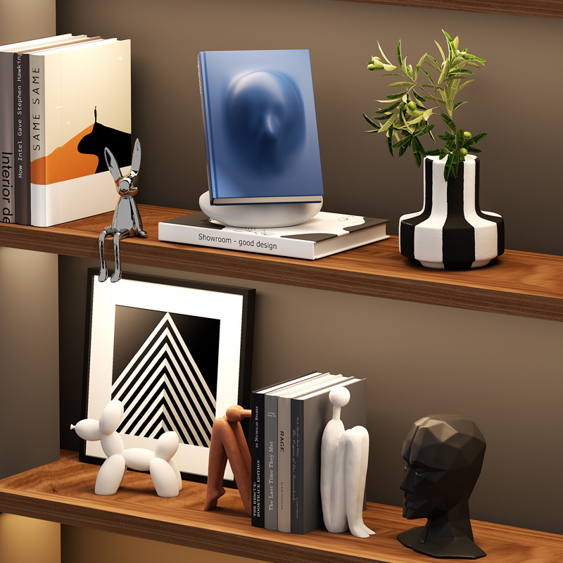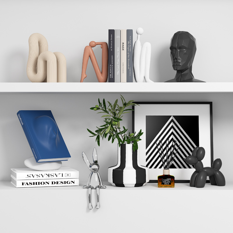 Подставка для книг сзади и спинкой; Амортизирующие художественные украшения (дизайнерский стиль); Абстрактная геометрия H; Подставка для книг абстрактных персонажей (комплект); Собака-воздушный шар (белый); Собака-воздушный шар (черный); Гальванический серебряный кролик; Ваза с черно-белыми цветами; Выбранный дизайн и полный комплект