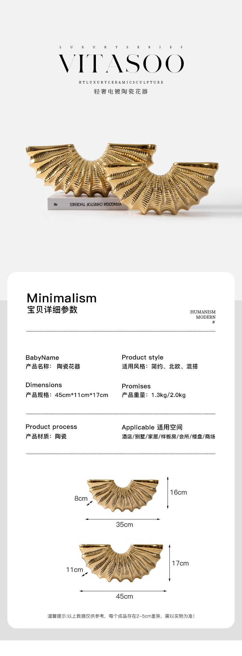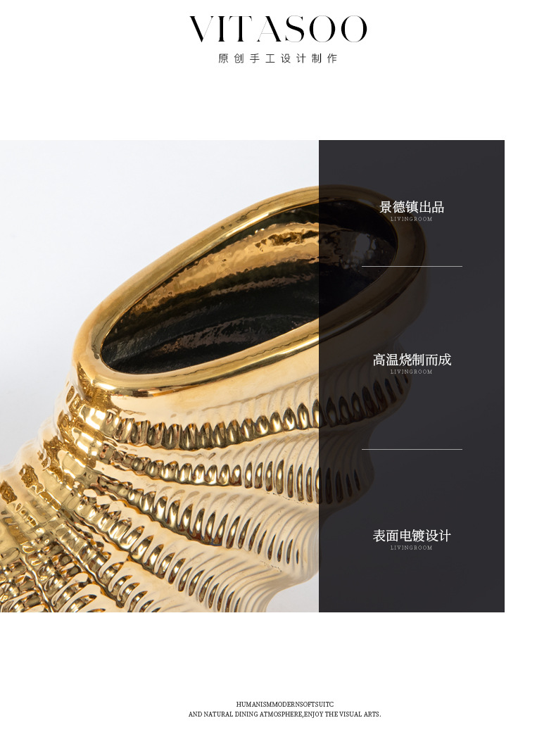 Certiscer Тринадцать Современная легкая роскоши с золотом итальянская керамическая ваза полукруглая ракушка в форме модели комнаты с мягким маятником