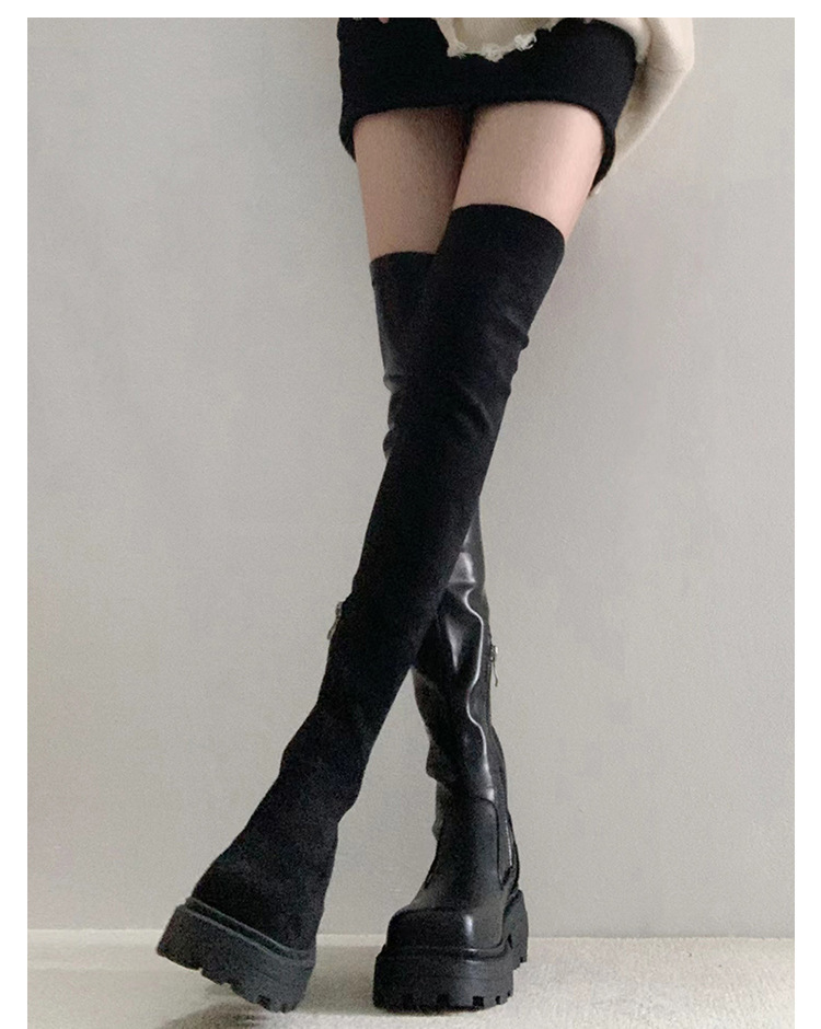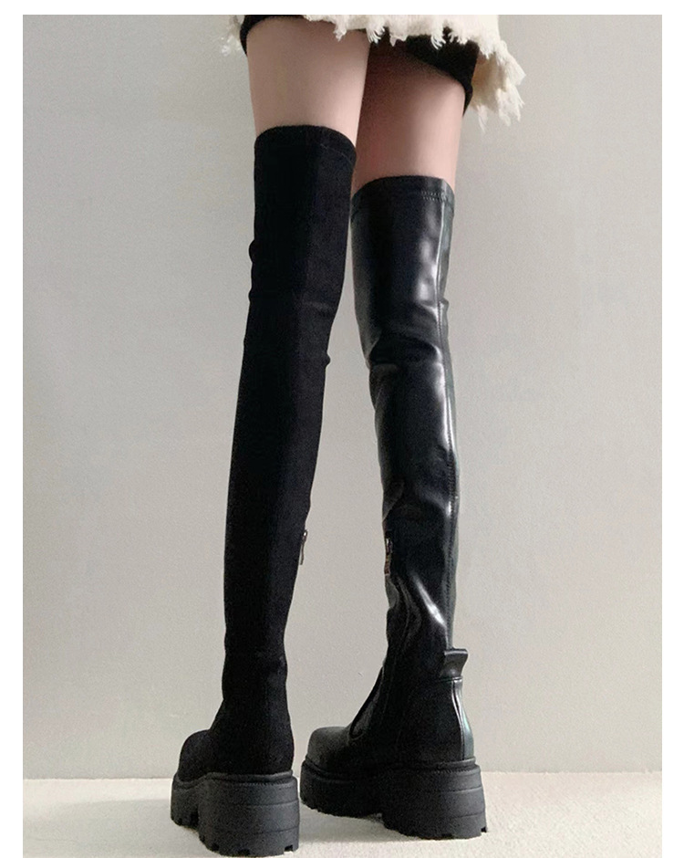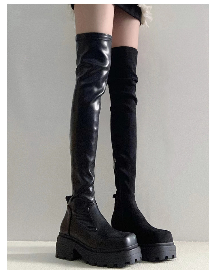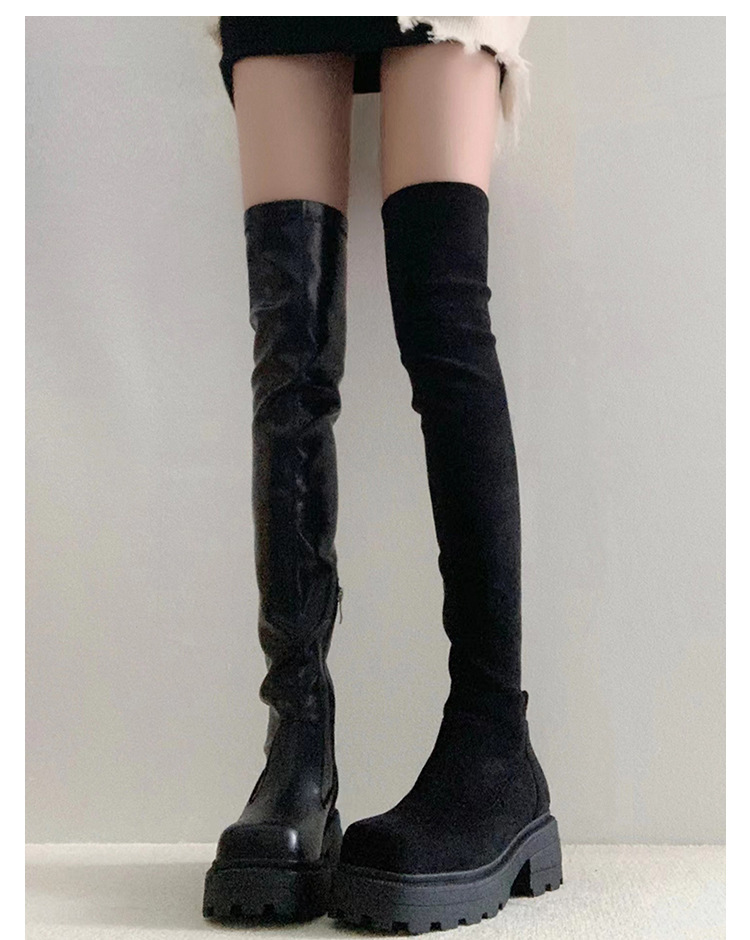 Упругие тонкие, более колено сапоги женские осенние и зимние новые толстые каблуки