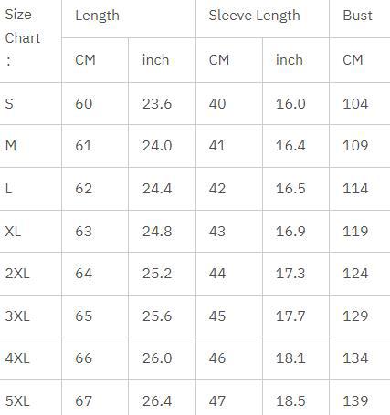 S; M; L; XL; 2XL; 3XL; 4XL; 5XL