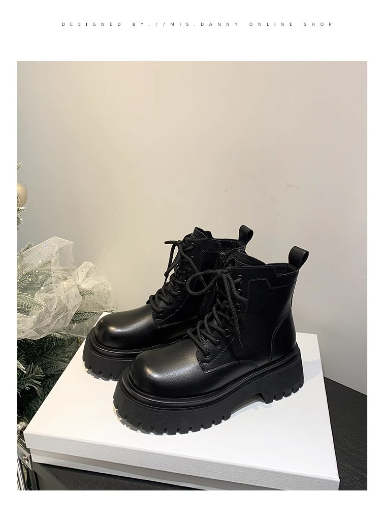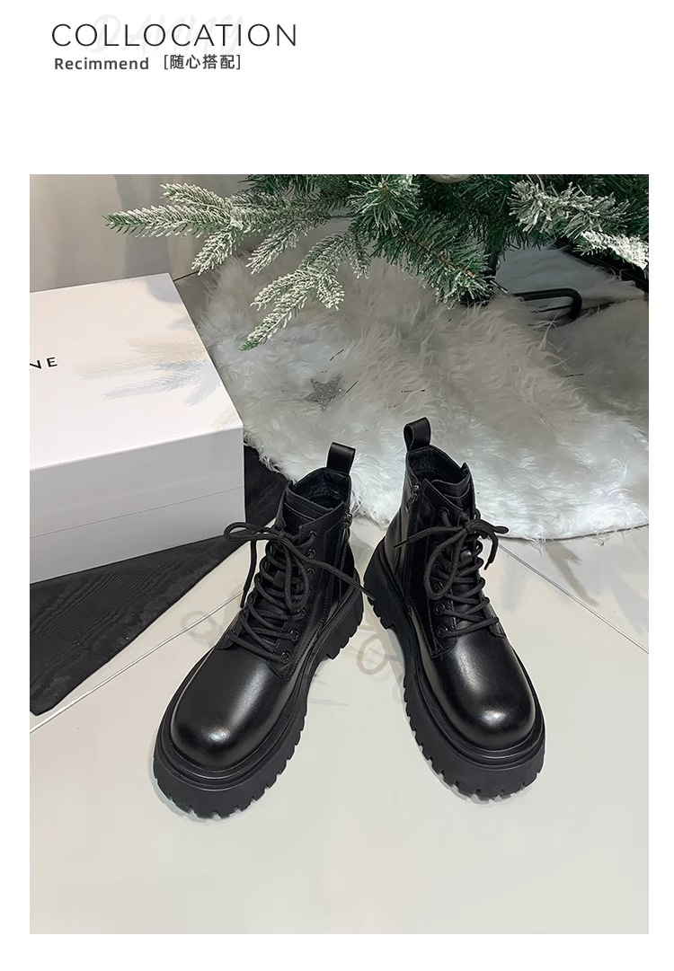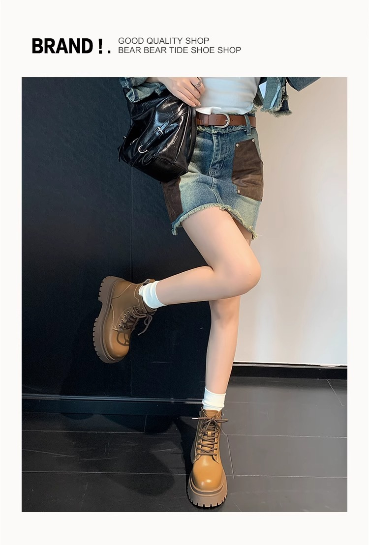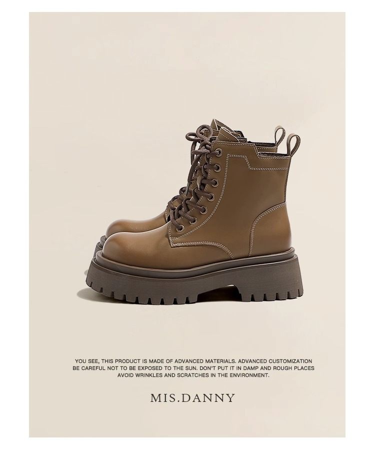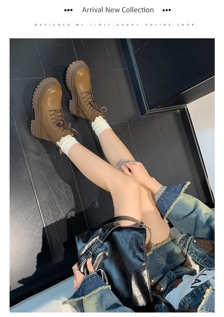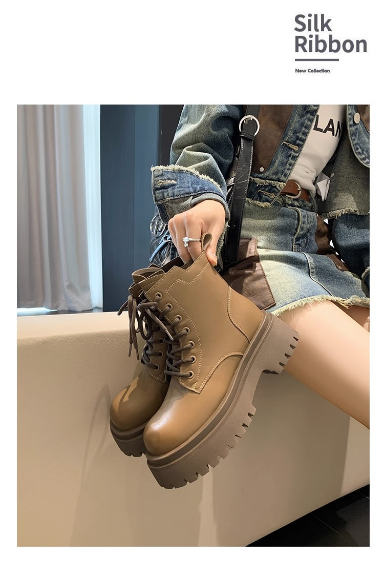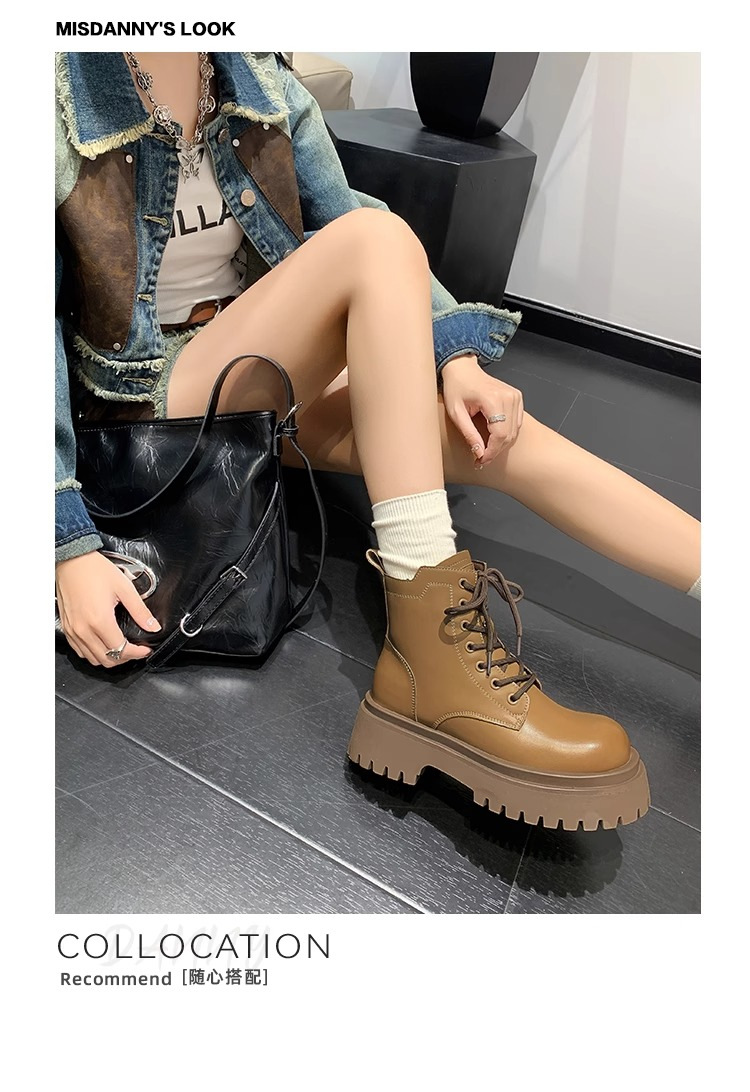 Короткие ботинки с круглой головкой шнуровки женские 2024 осень и зима новые увеличенные ботинки Martin сапоги женские дикие коричневые мотоциклетные сапоги