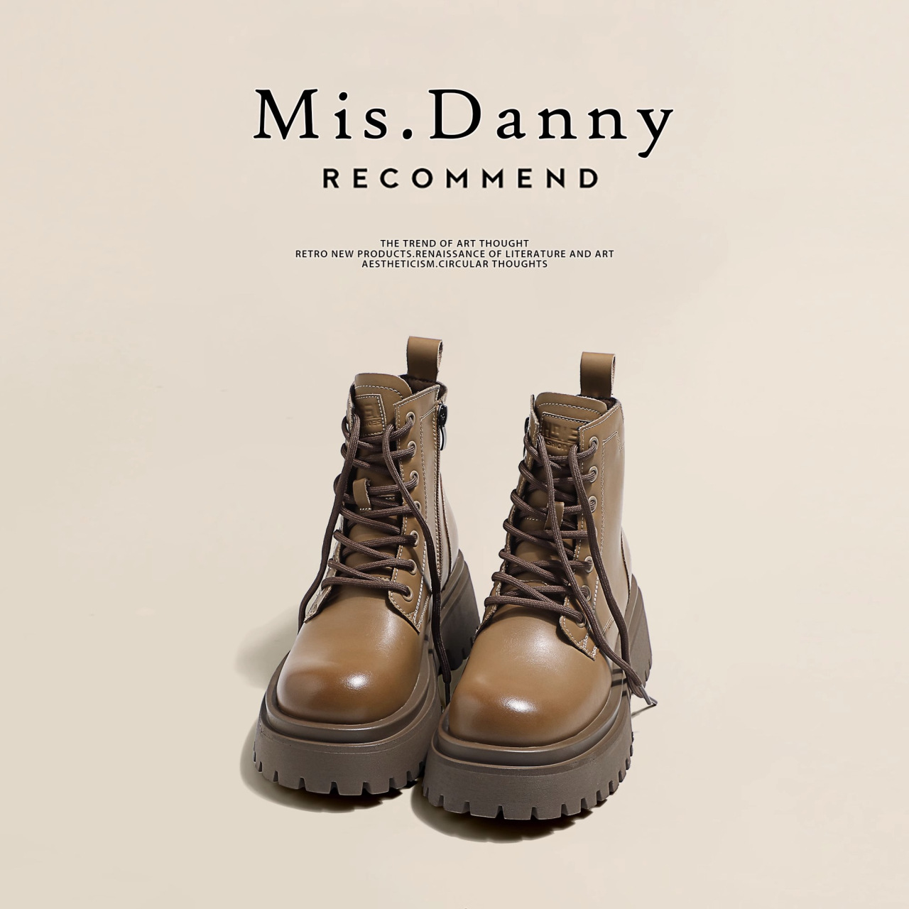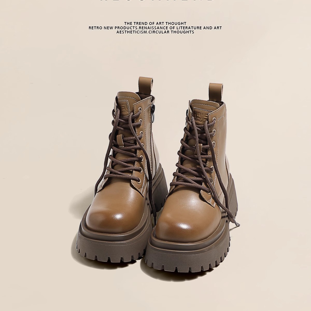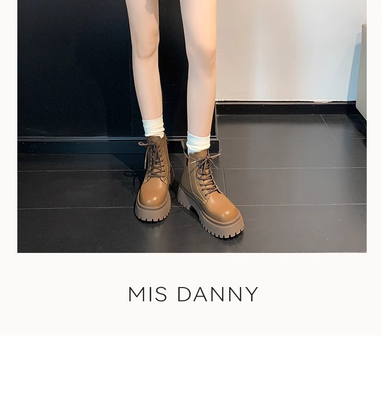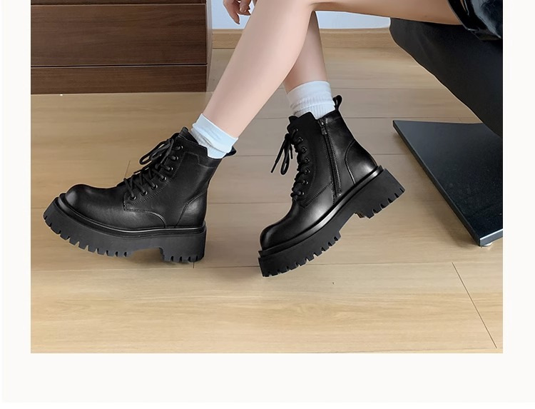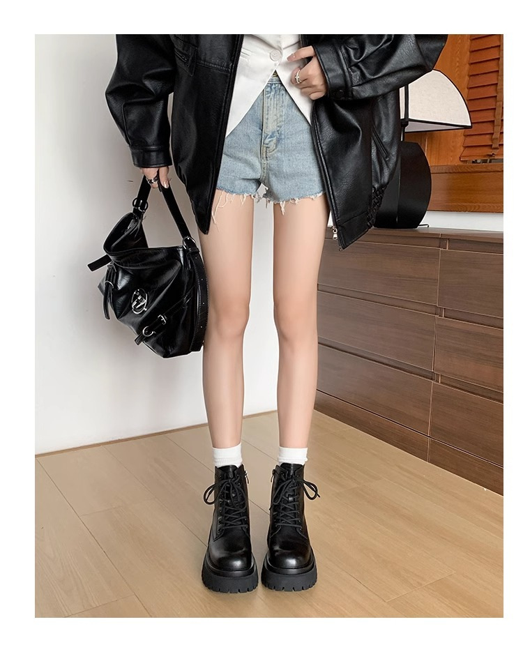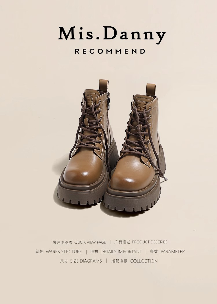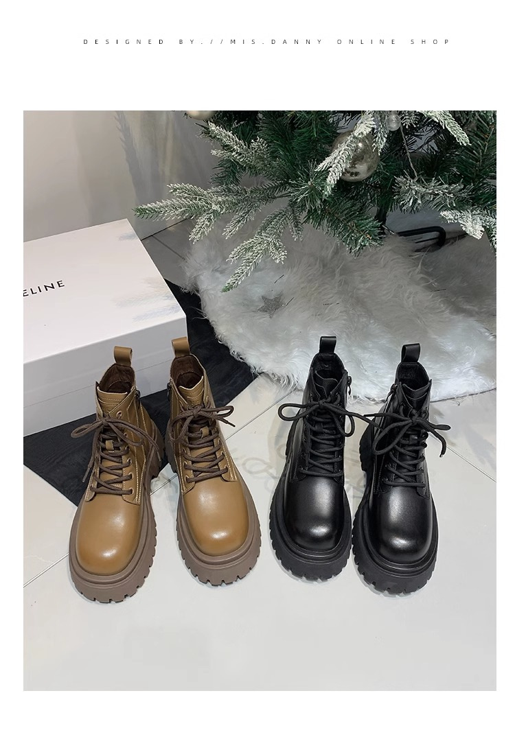 Короткие ботинки с круглой головкой шнуровки женские 2024 осень и зима новые увеличенные ботинки Martin сапоги женские дикие коричневые мотоциклетные сапоги