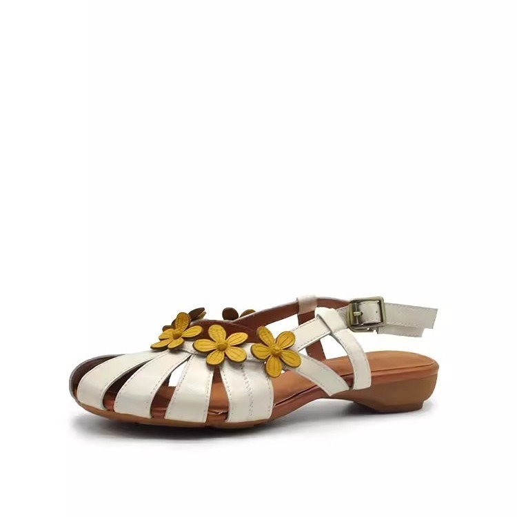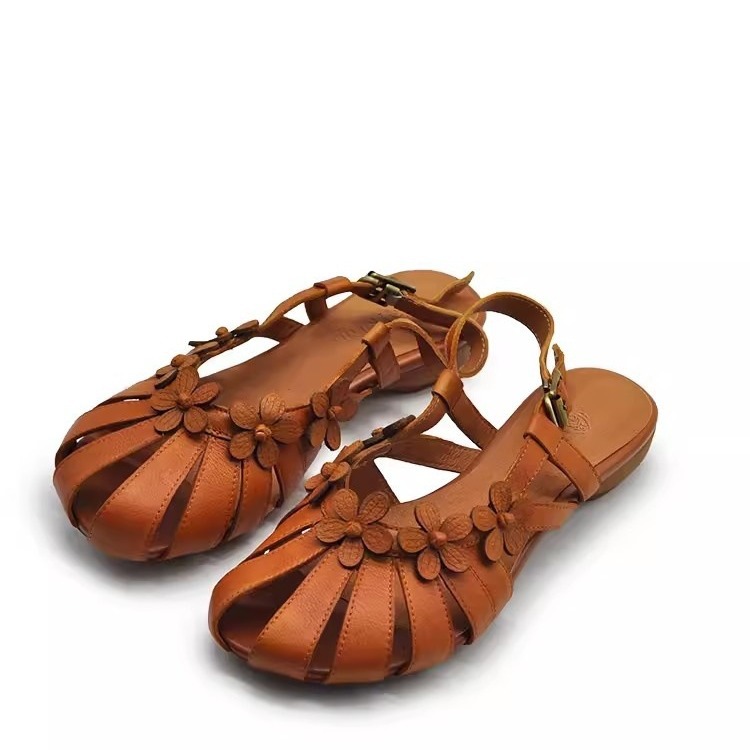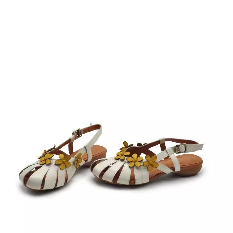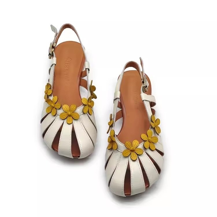 Оригинальные цветы в римском стиле с полыми головами сандалии женские 2024 новые туфли на низком каблуке