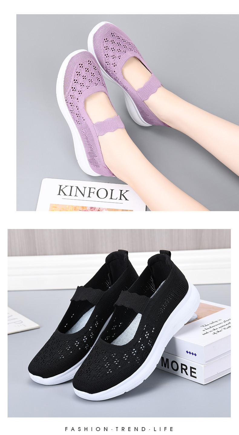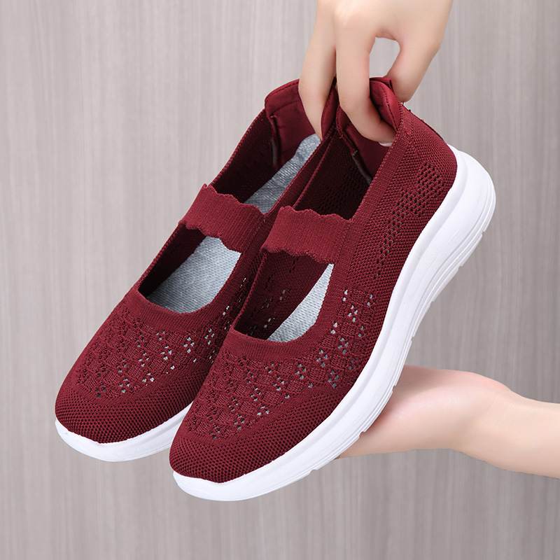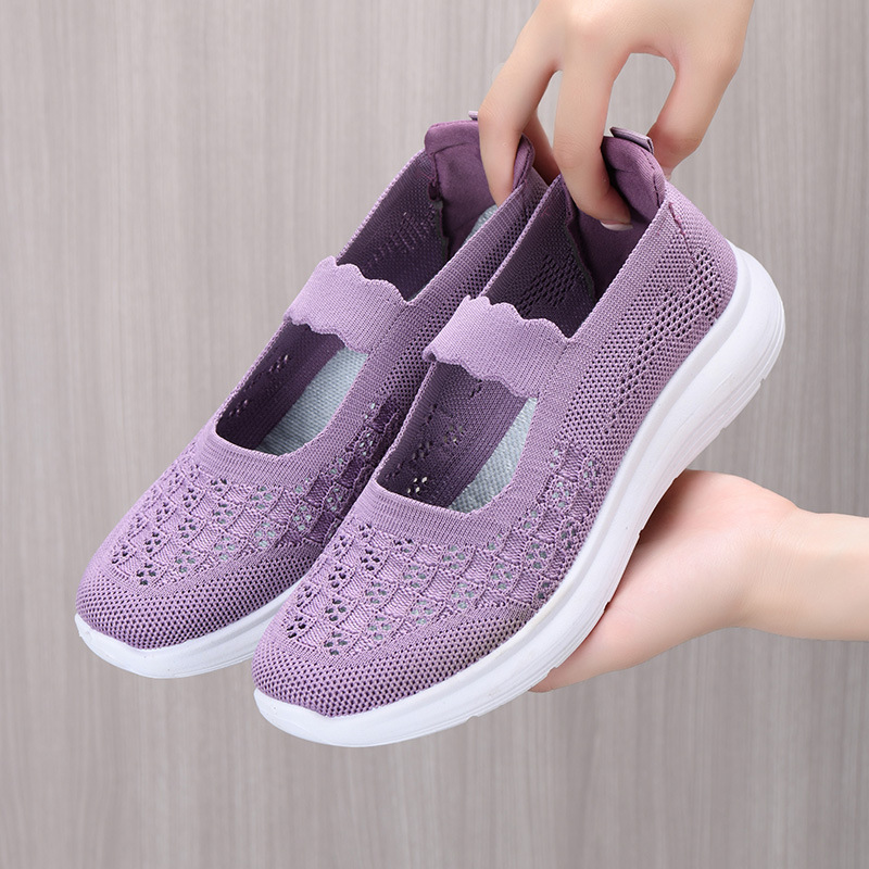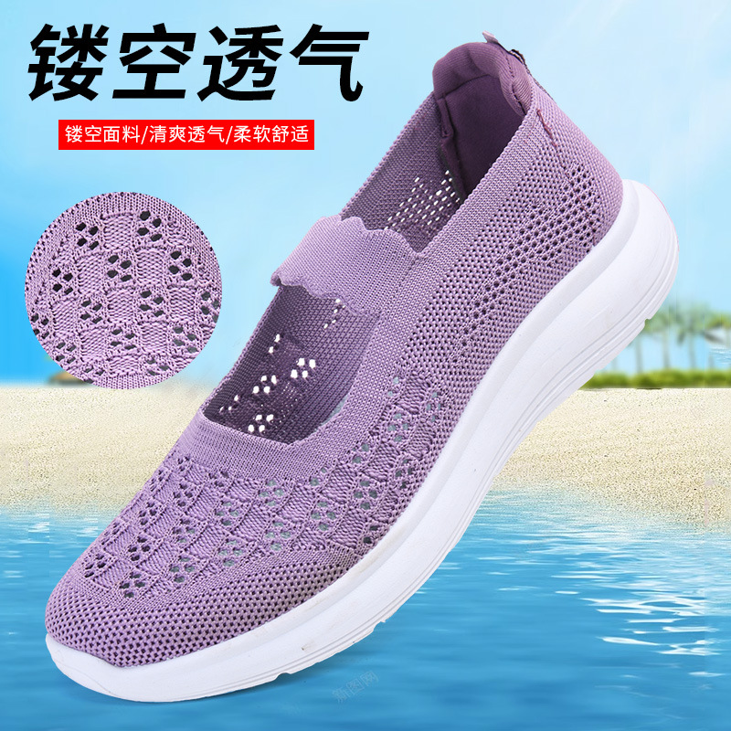 2024 Летняя новая сетчатая обувь мама мягкая подошва дышащая повседневная обувь одна педаль легкая обувь для пожилых людей