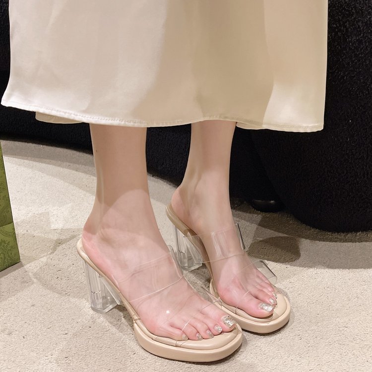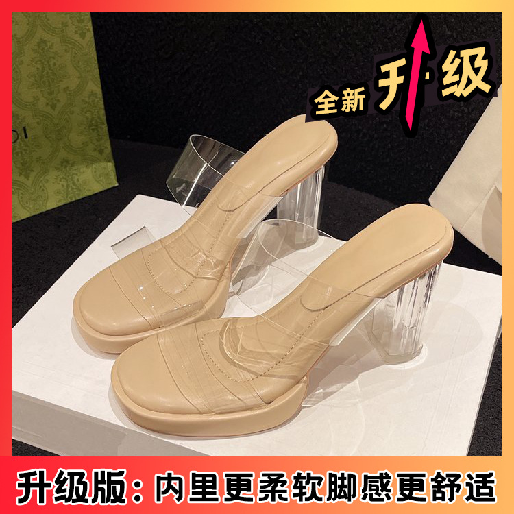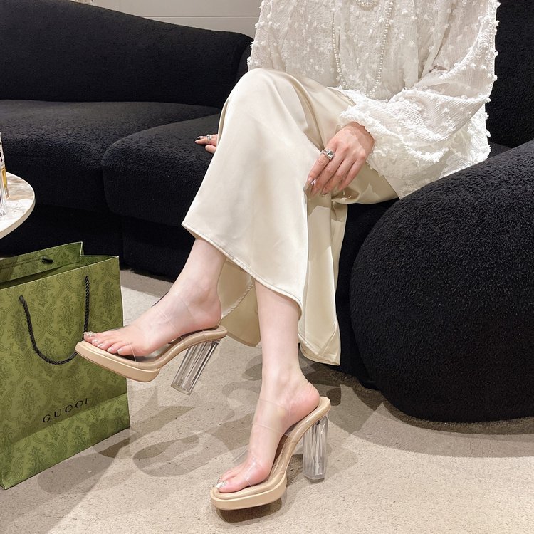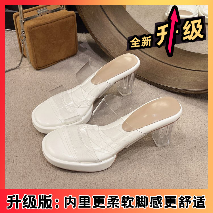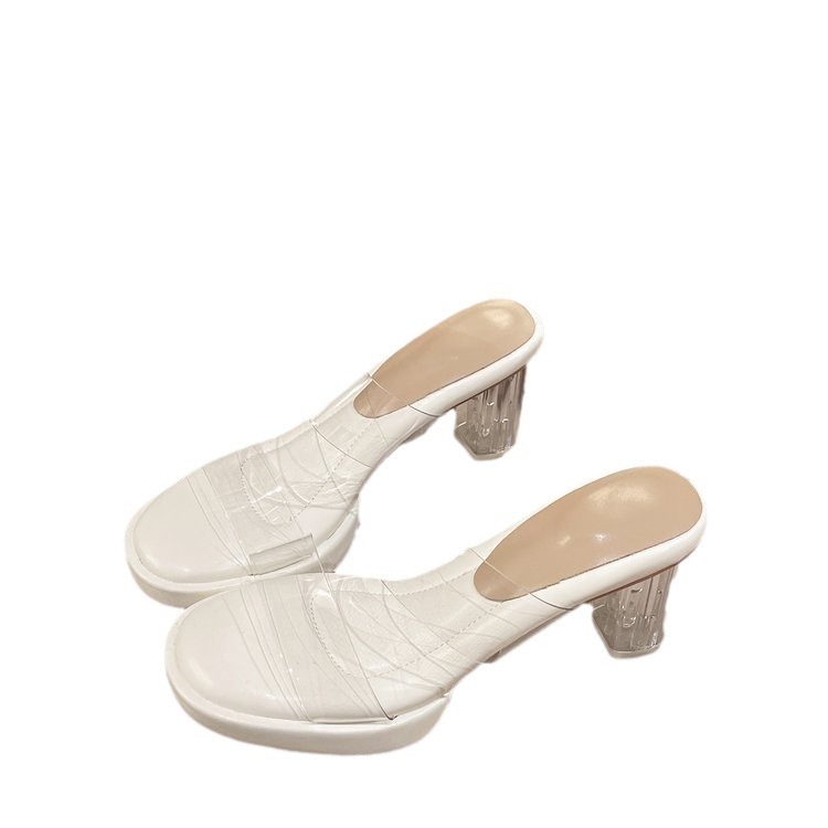 Летняя верхняя одежда, женские туфли на высоком каблуке с кристаллами, новинка 2024, непромокаемые босоножки на толстом каблуке с прозрачным ремешком на платформе, оптовая продажа