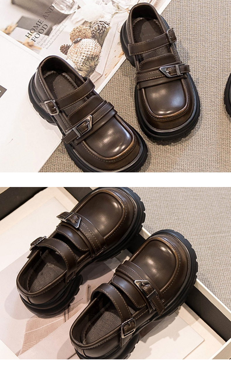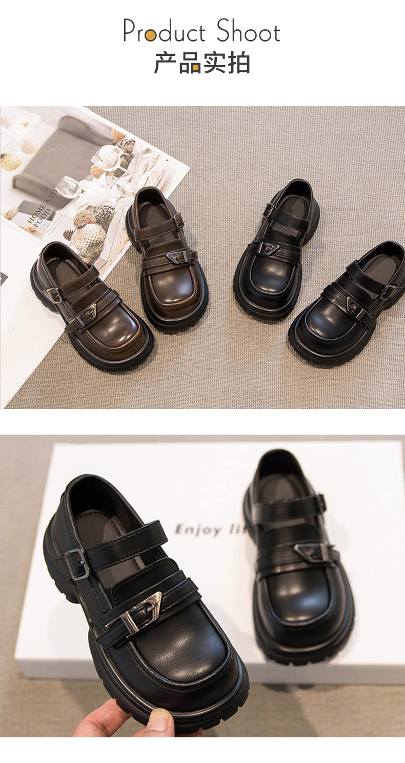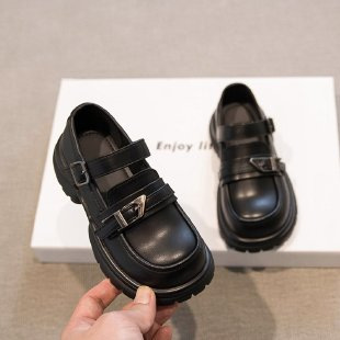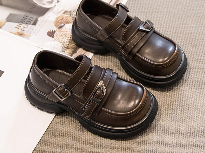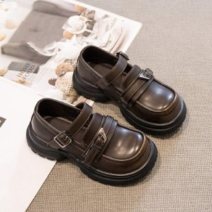 Квадратные кожаные туфли детские металлические пуговицы с широкими головками ретро маленькие кожаные туфли 2024 осень новая мода повседневная обувь