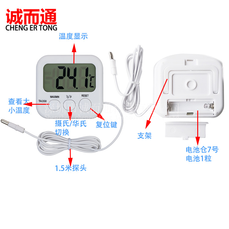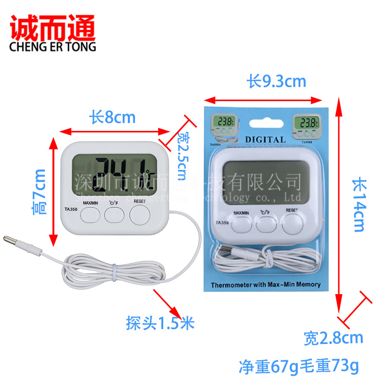 厂家直销 室内家用温度计冰箱鱼缸带探头电子温度表测温计TA358