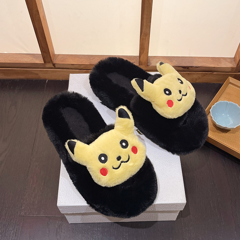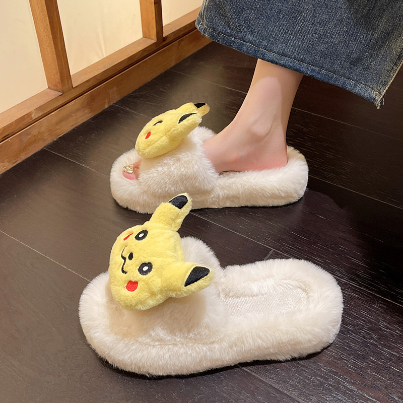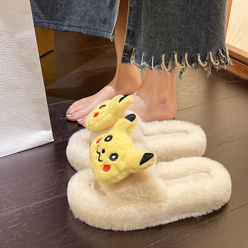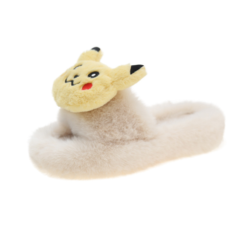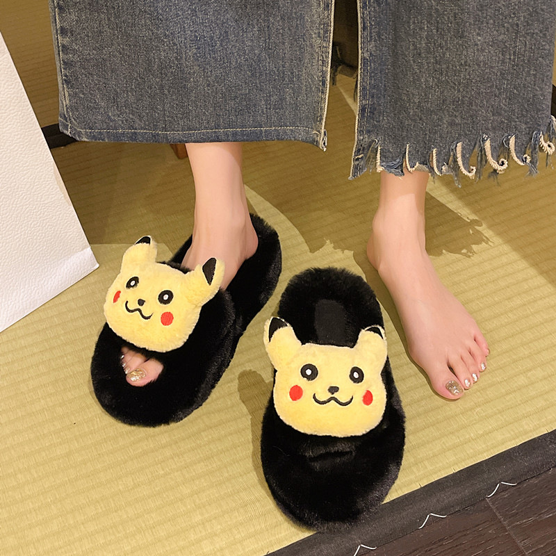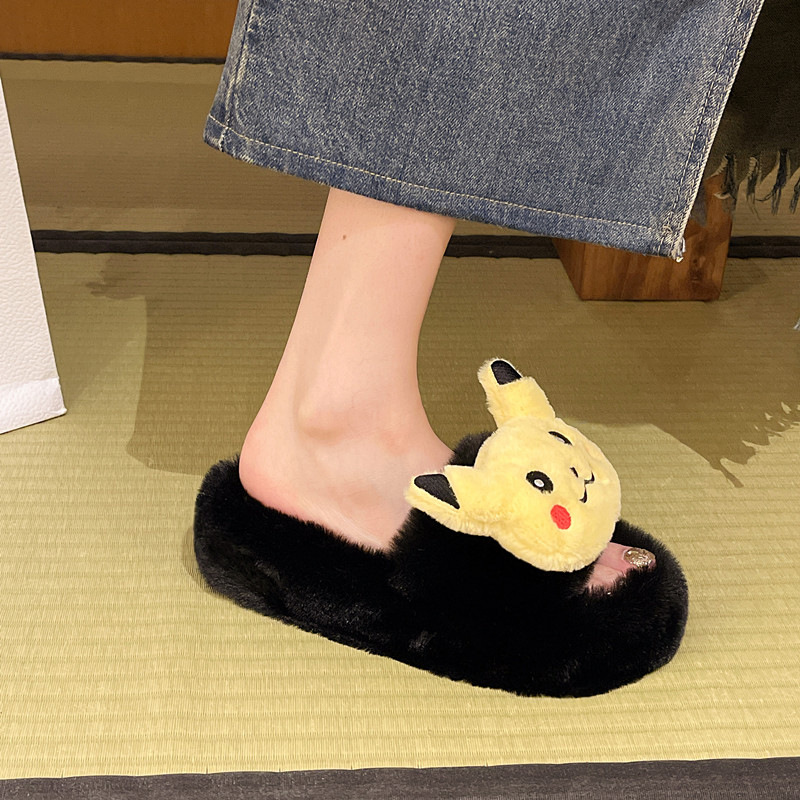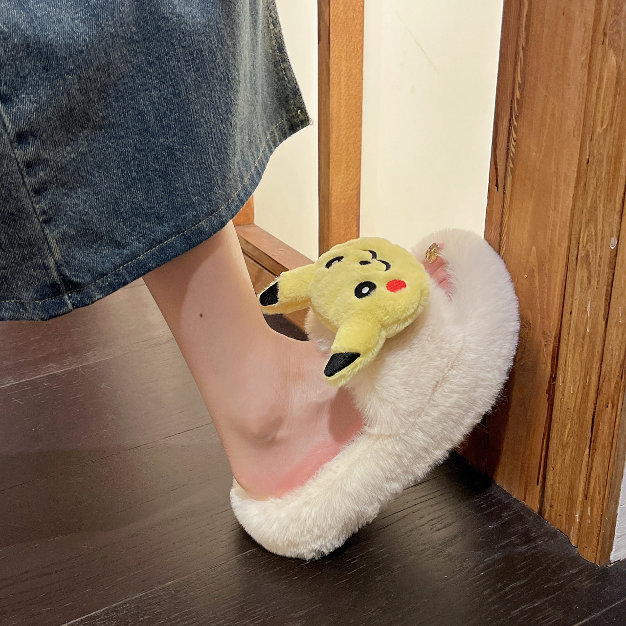 Мультяшный милый волосатый женский тапочки 2024 осень-зима новый толстый фон внутри плюс бархатная повседневная модная обувь для домашнего использования