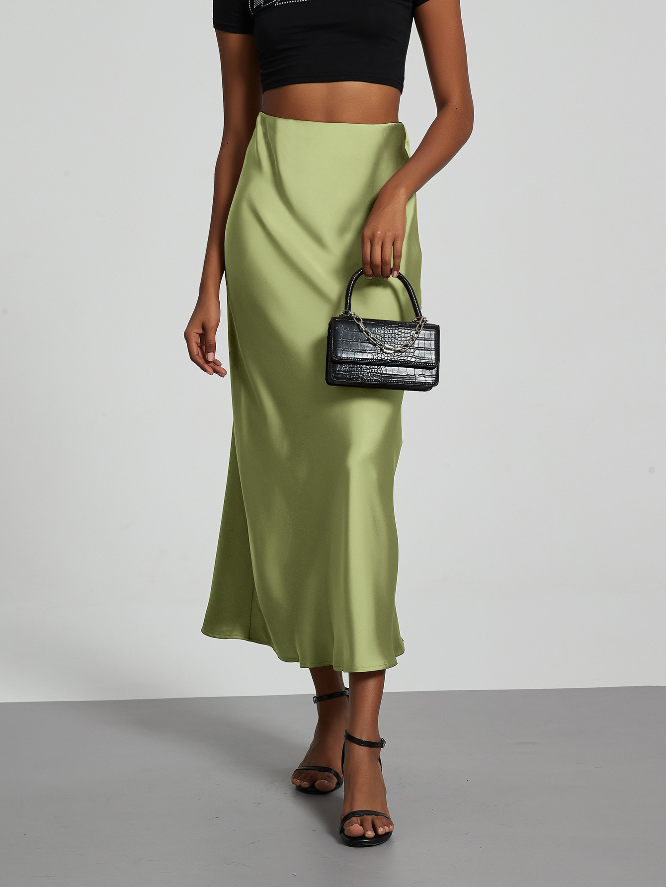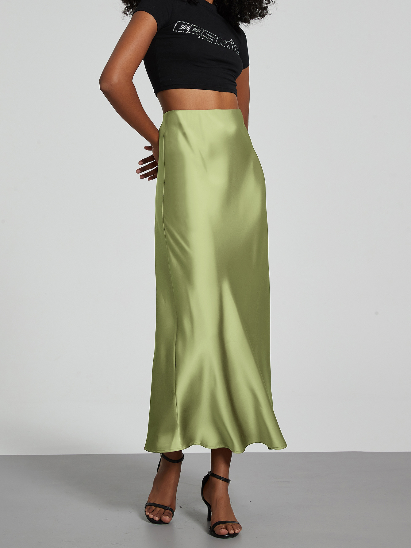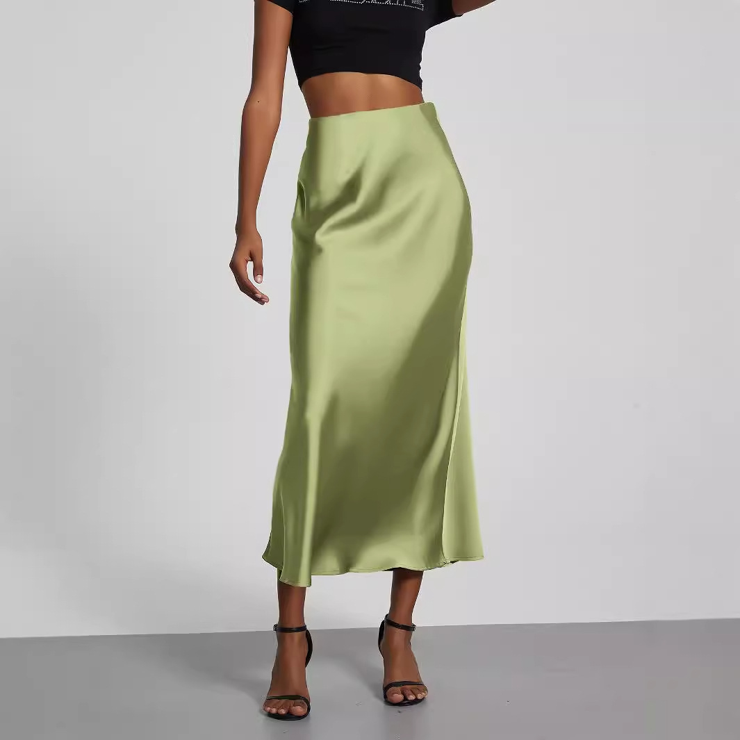 Трансграничная женская одежда оптом европейский и американский стиль моды темперамент атласная текстура юбка сплошной цвет глянцевая подвеска