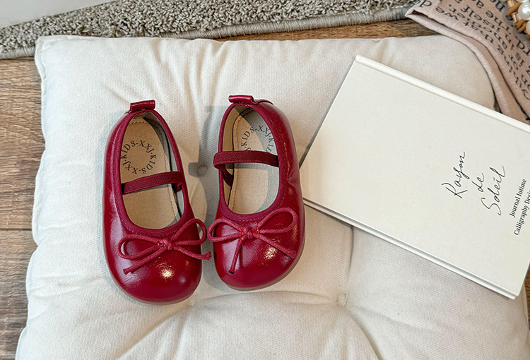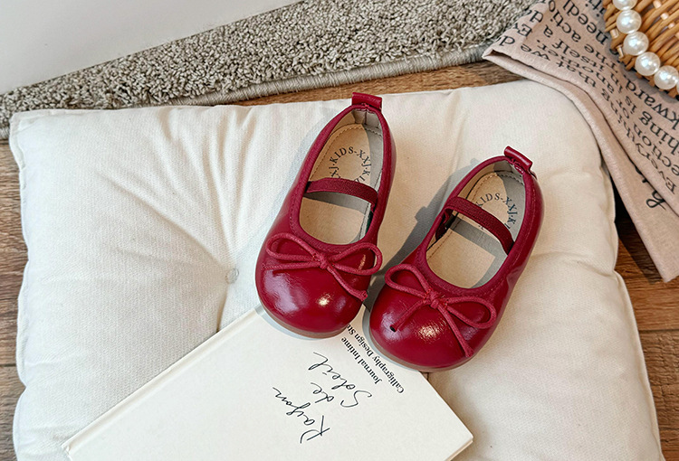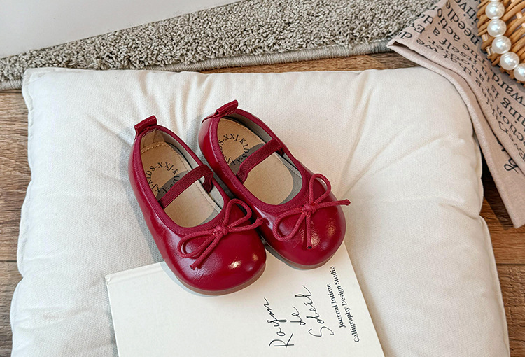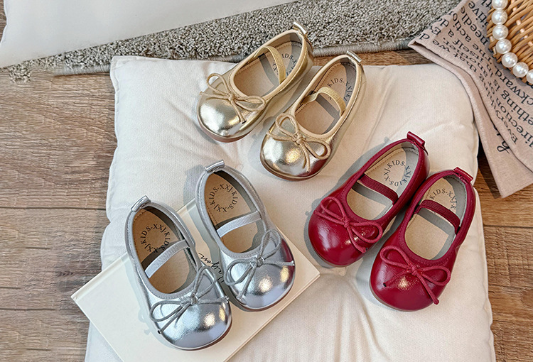 Детские кожаные туфли 2024 осенние корейские девушки милые банты неглубокие туфли