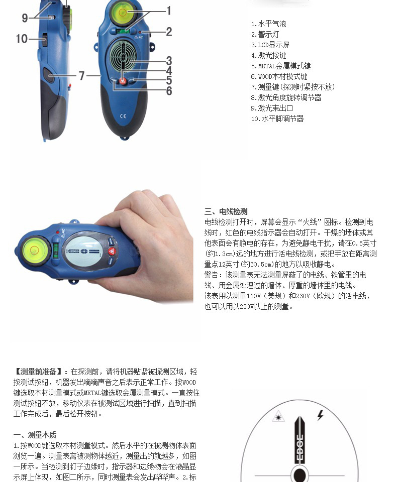 LA-1010 многофункциональный провод детектор портативный металлоискатель стены детектор