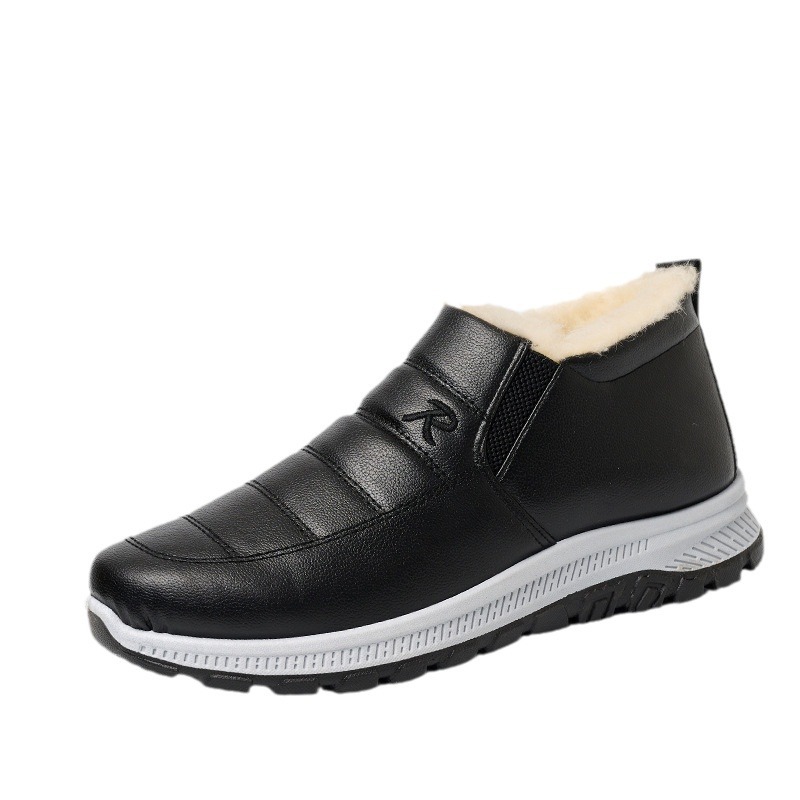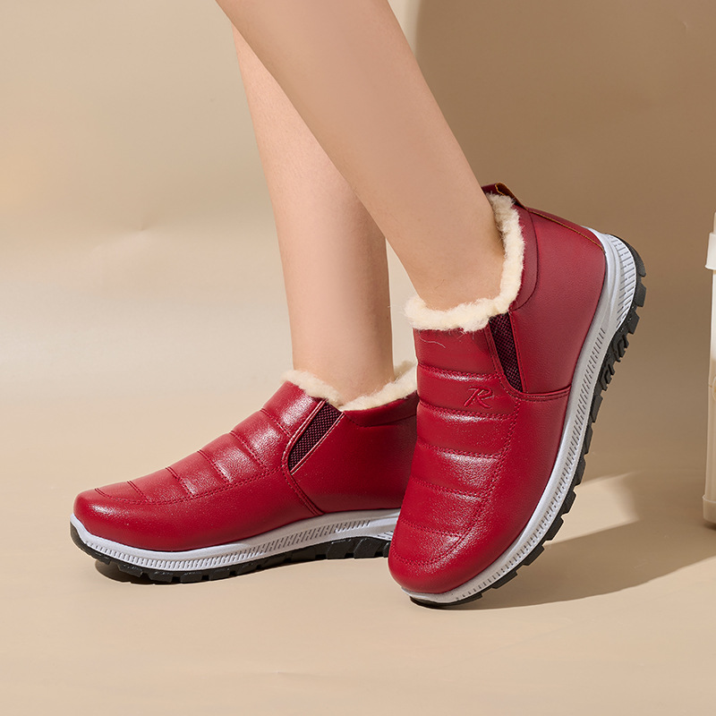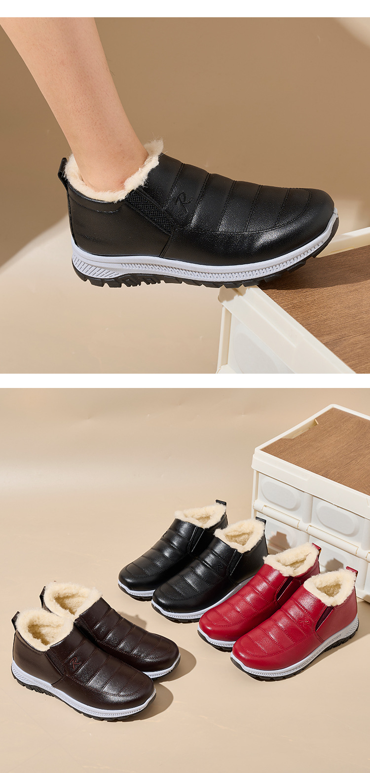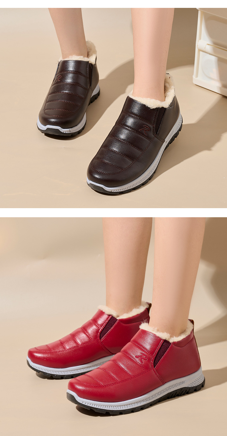 Черные флисовые теплые хлопковые туфли.; Теплая хлопковая обувь коричневого бархата; Теплая хлопковая обувь из красного флиса.