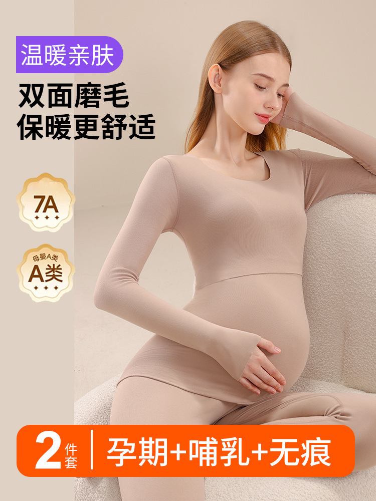 Материнская осенняя одежда Осенние брюки набор Derong 7A Антибактериальное термобелье Плюс размер послеродовое кормление грудного вскармливания костюм пижамы